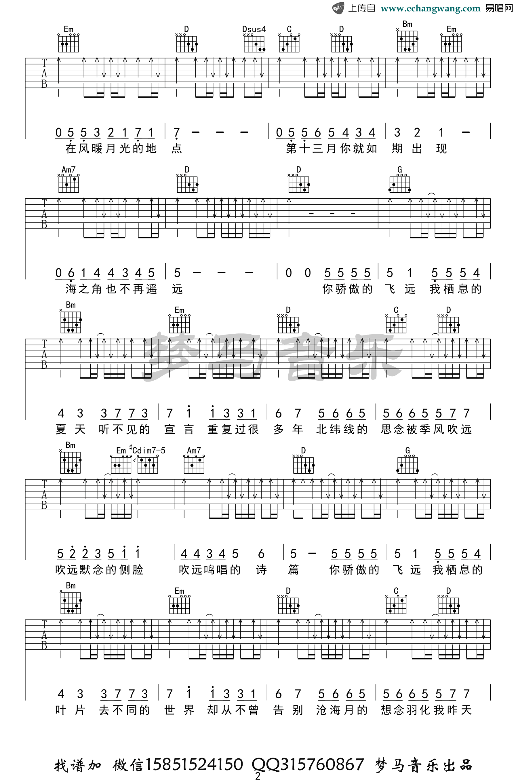 - 隔岸吉他谱_姚六一_C调弹唱谱_古风歌曲