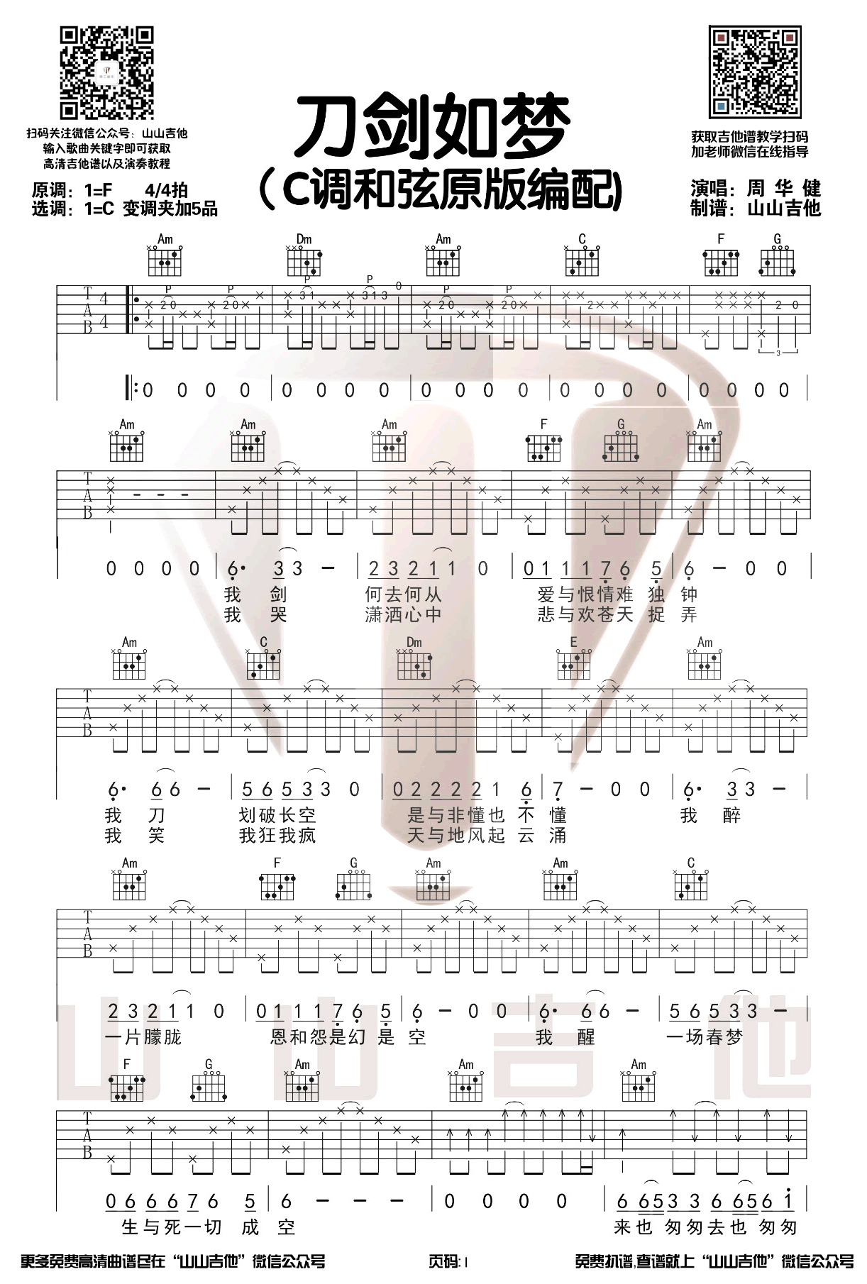 - 刀剑如梦吉他谱_周华健_C调原版带前奏_弹唱谱