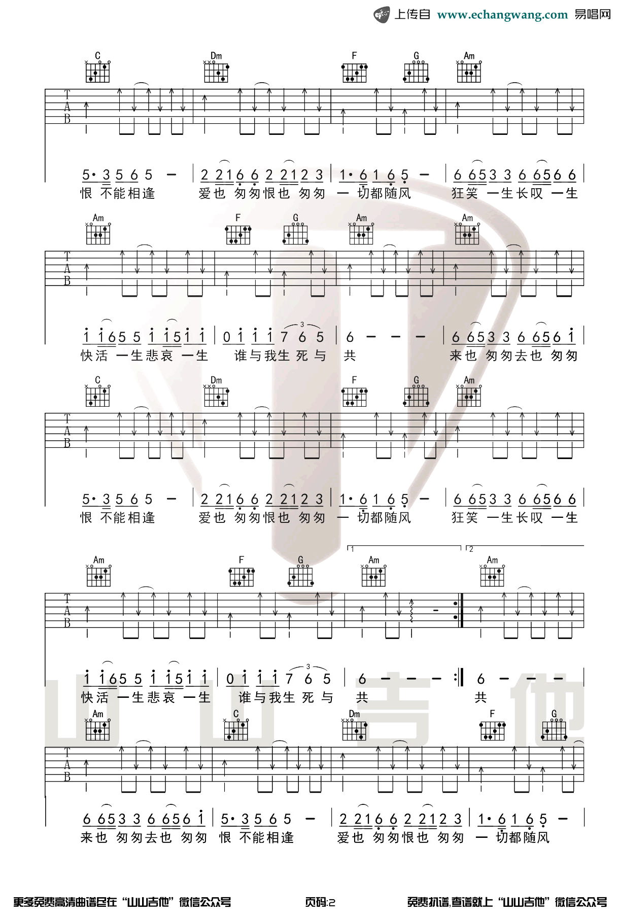 - 一吻天荒吉他谱_胡歌_G调扫弦版_弹唱示范