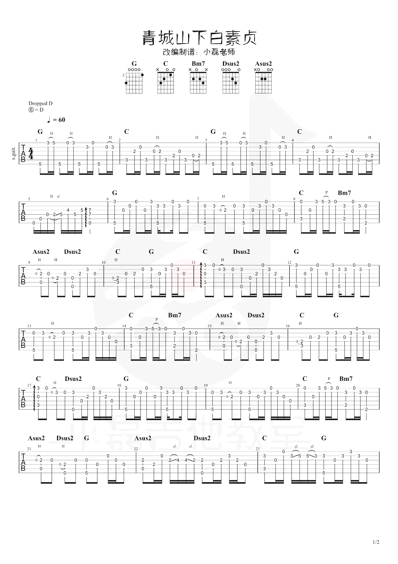 - 青城山下白素贞指弹谱_指弹教学视频_吉他独奏精品