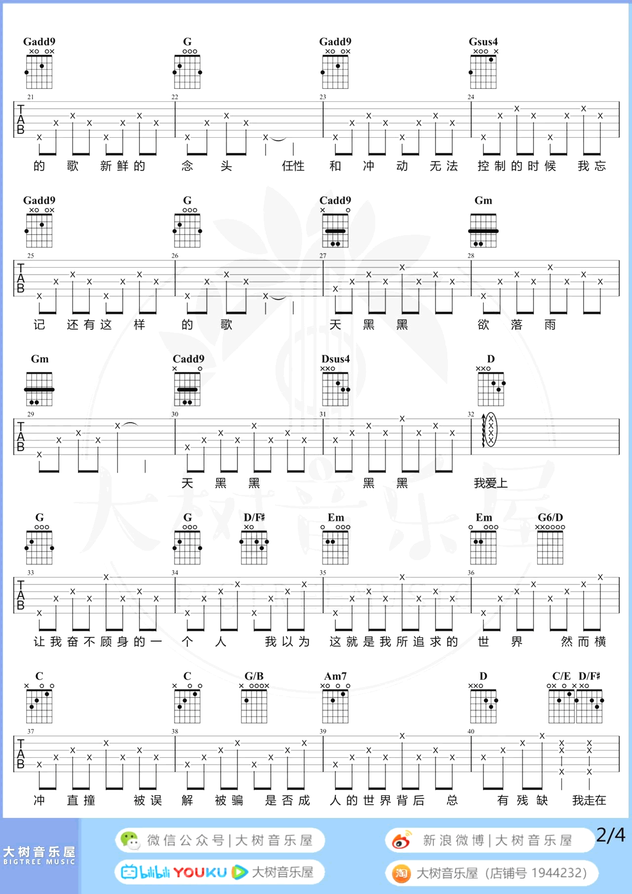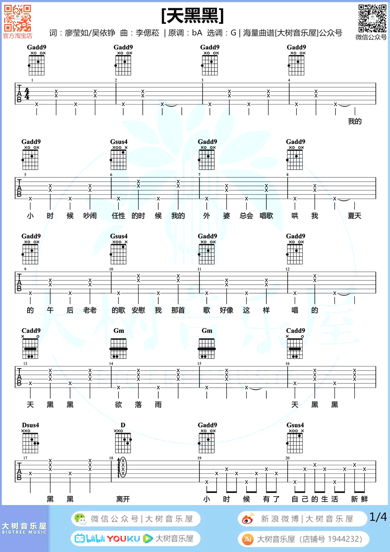 - 天黑黑吉他谱_孙燕姿_G调六线谱_高清版