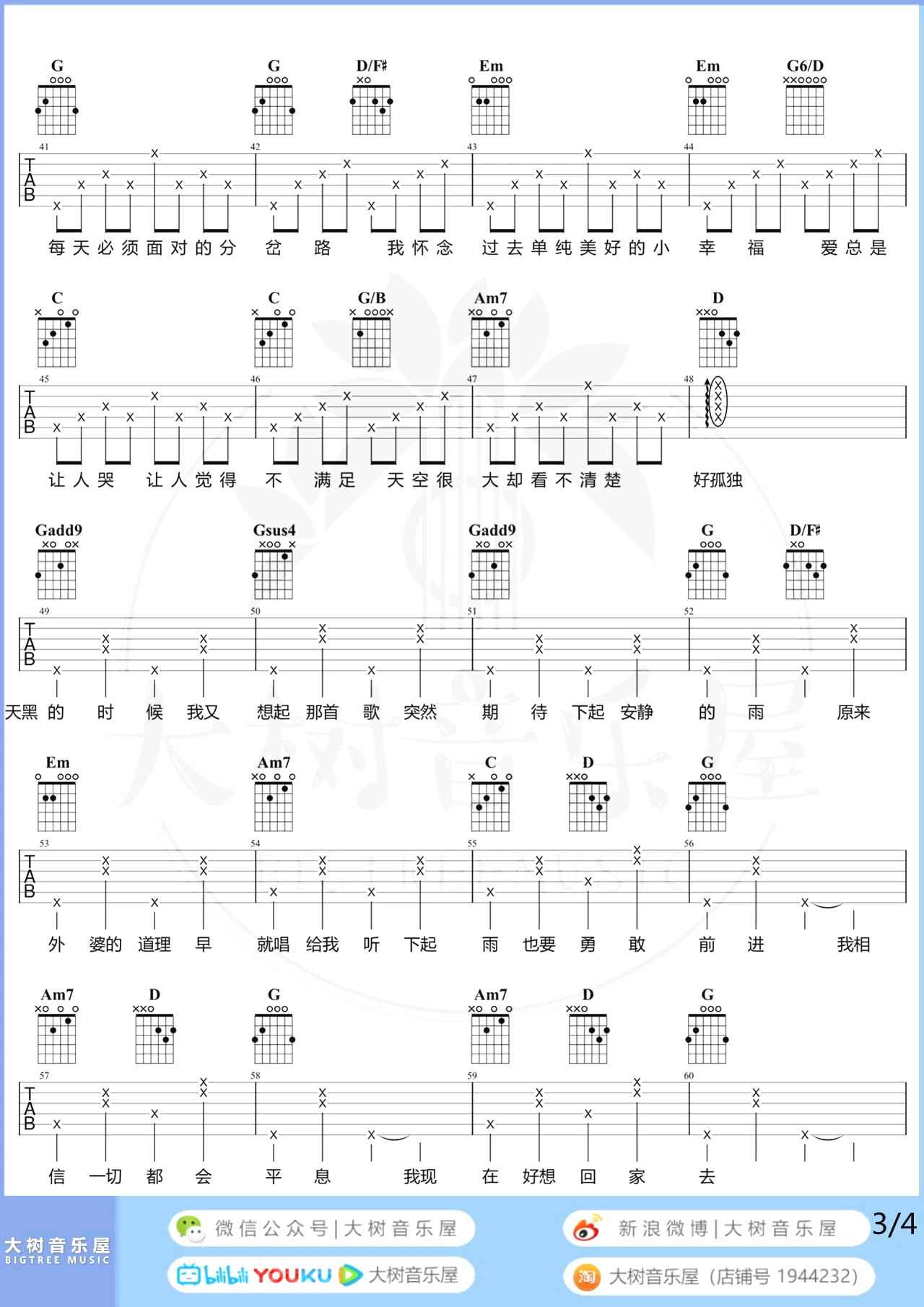 - 开始懂了吉他谱_孙燕姿_G调_弹唱+教学视频