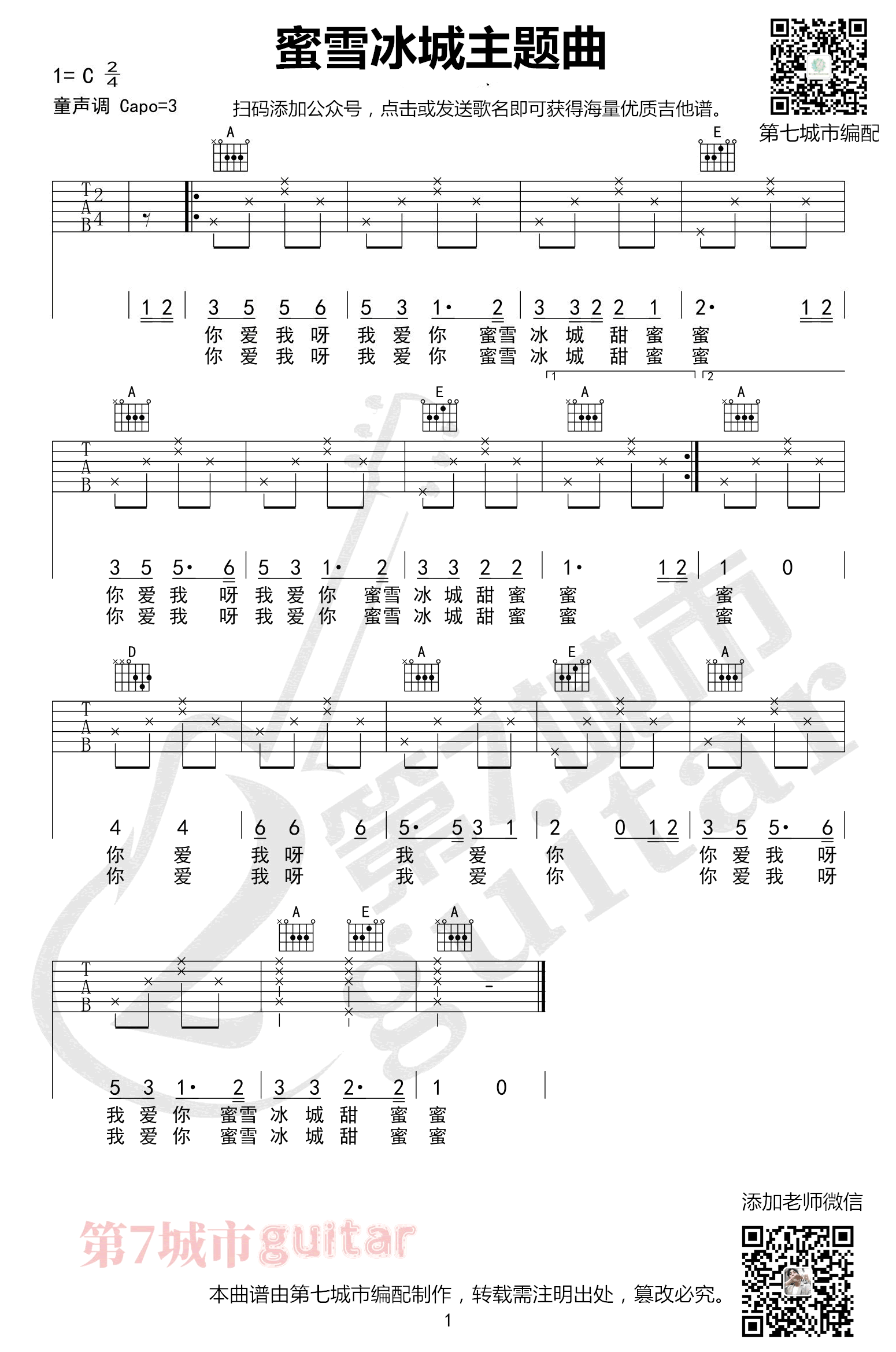 - 蜜雪冰城主题曲吉他谱_C调_蜜雪冰城甜蜜蜜_独奏谱