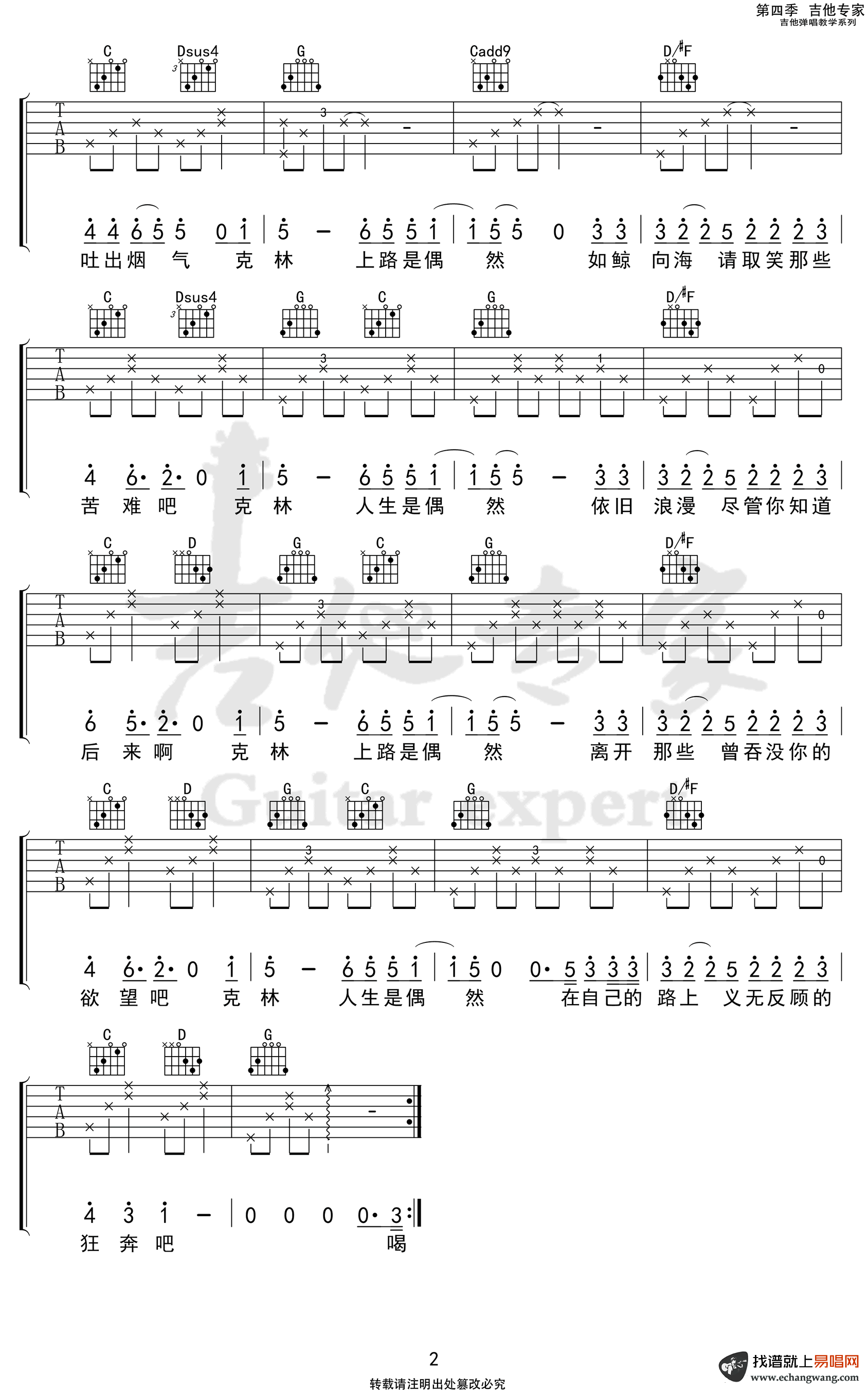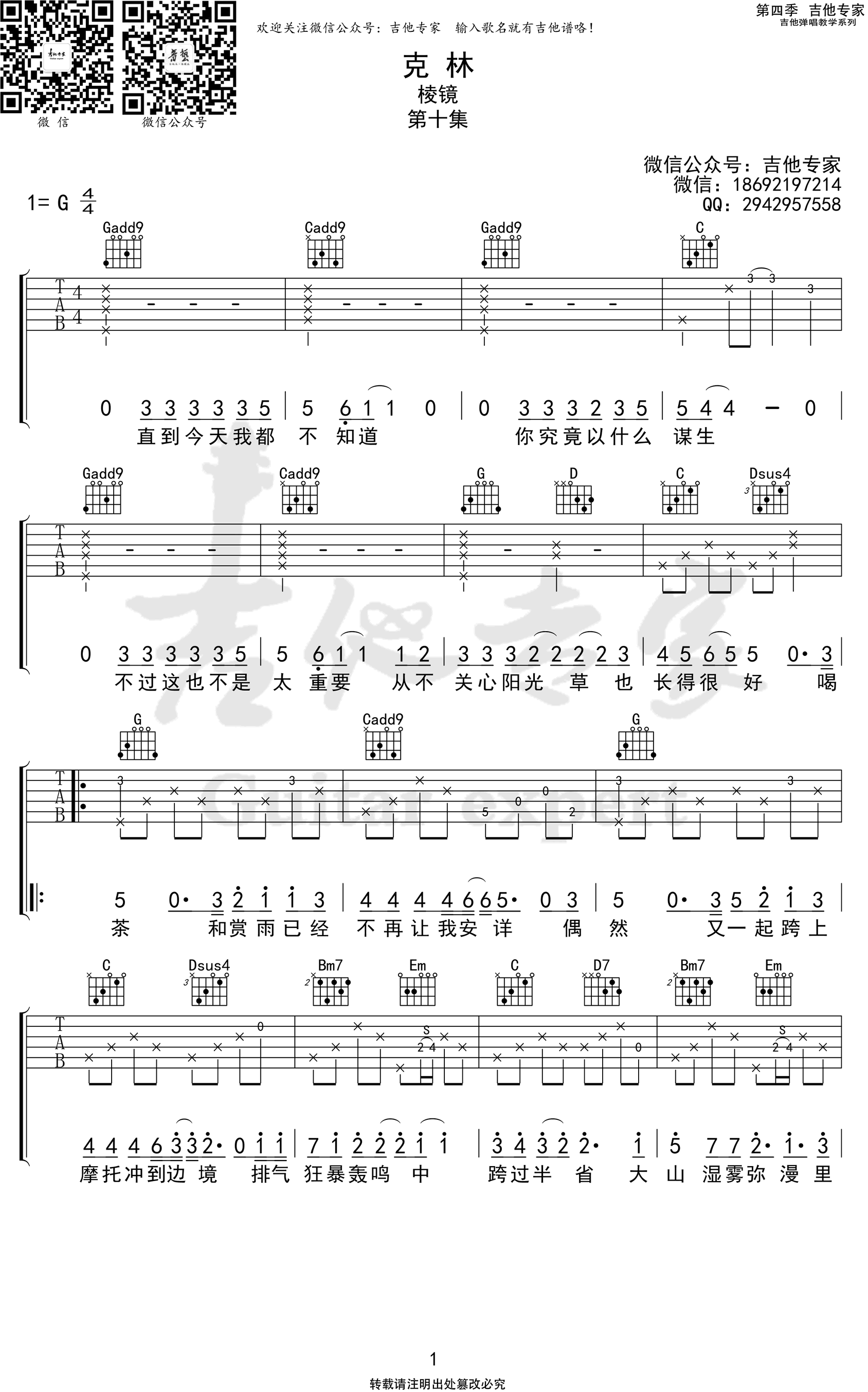 - 克林吉他谱_棱镜乐队_G调弹唱谱_《克林》六线谱