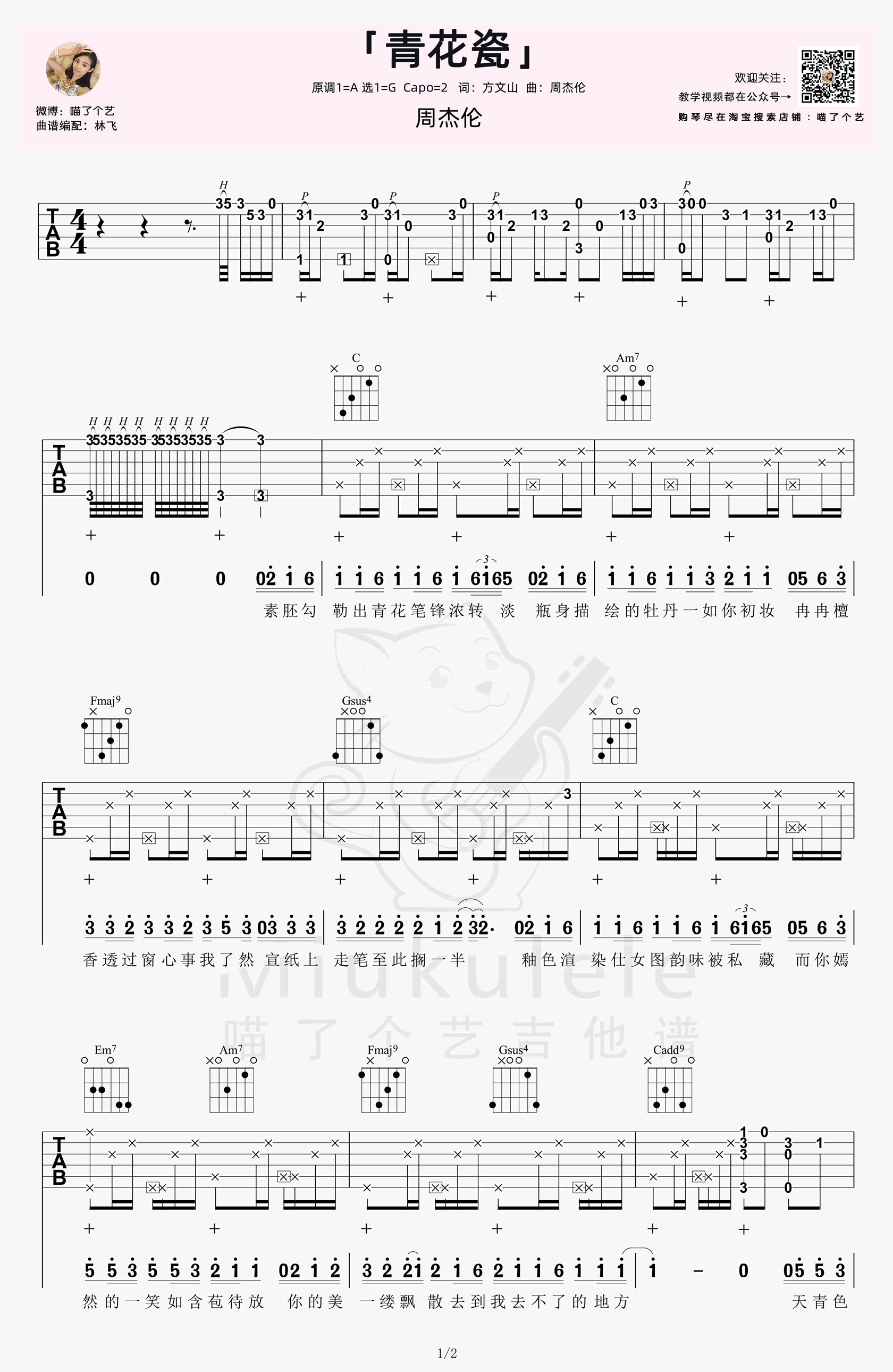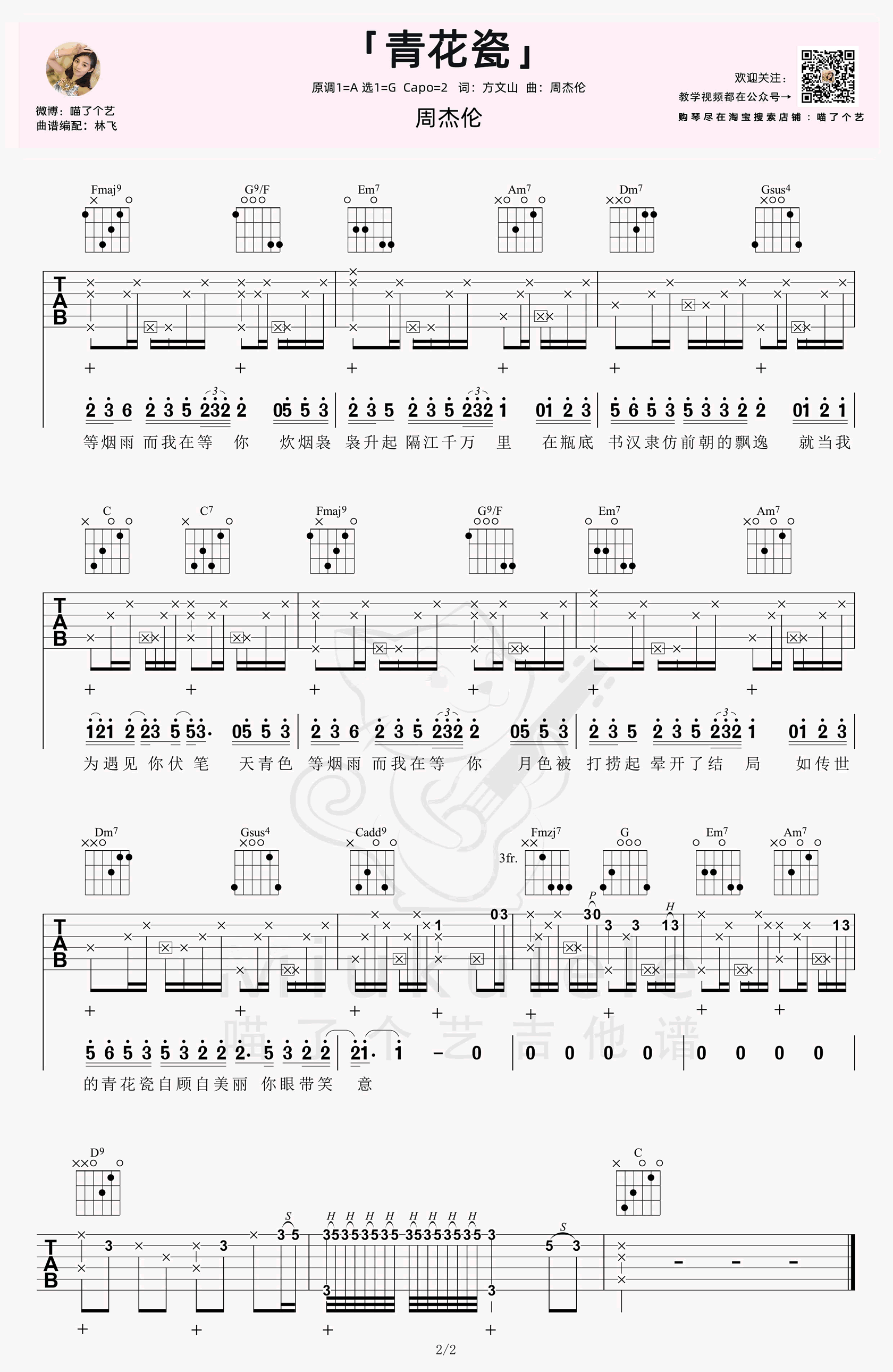 - 青花瓷吉他谱_周杰伦_G调弹唱谱_吉他演示教学视频