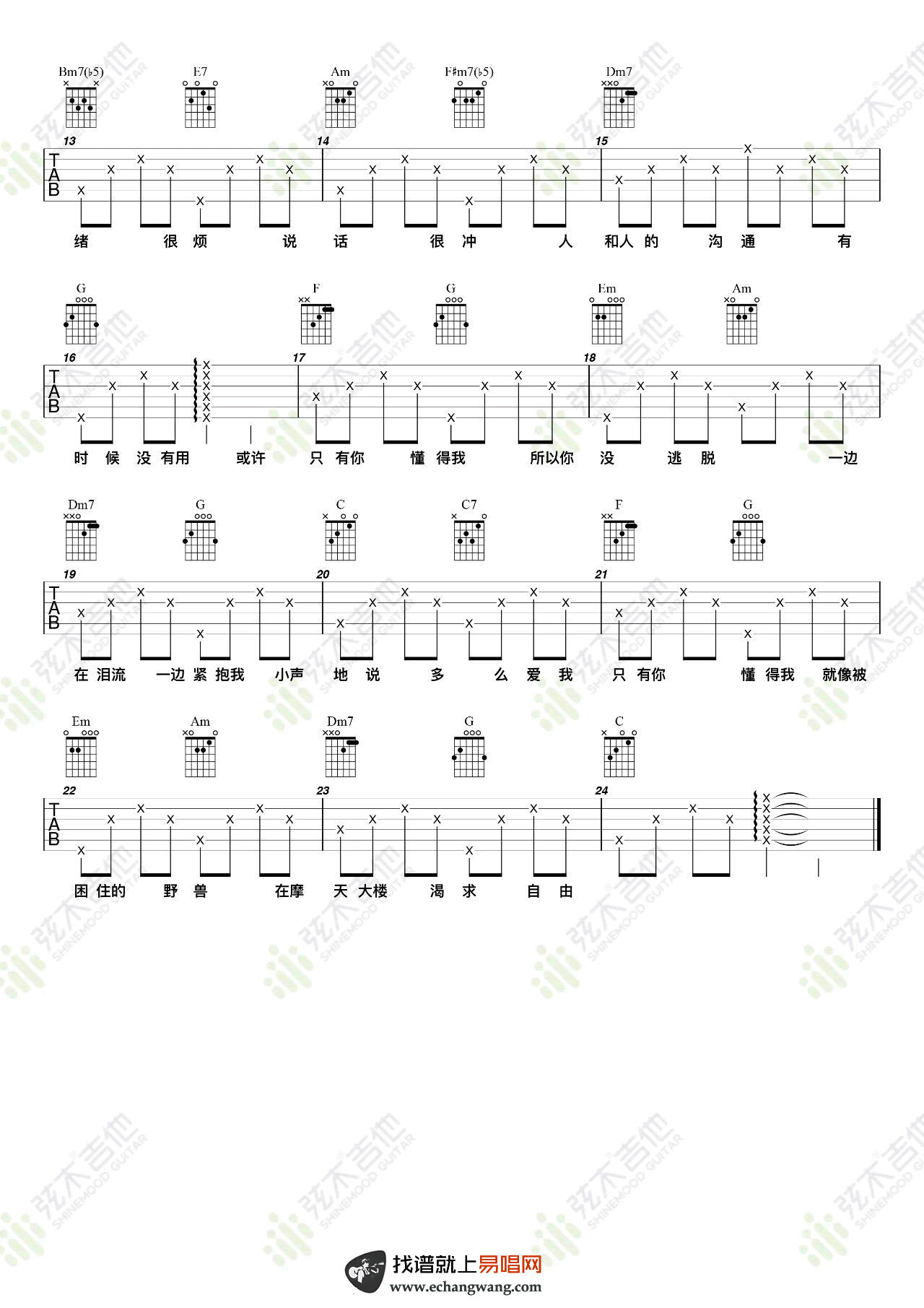 - 残酷月光吉他谱_林宥嘉_G调_弹唱六线谱