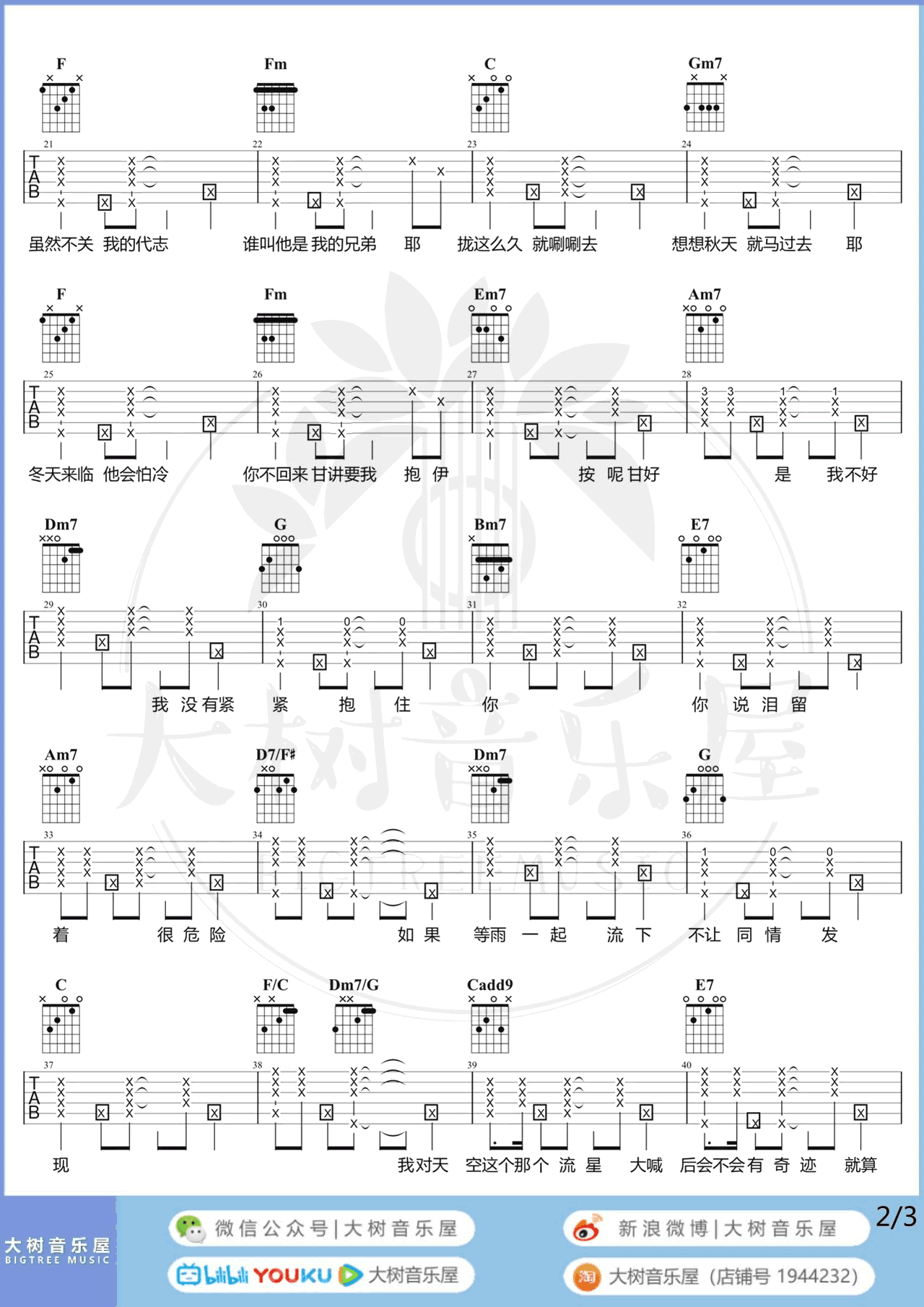- 白月光与朱砂痣吉他谱_大籽_G调原版_弹唱六线谱