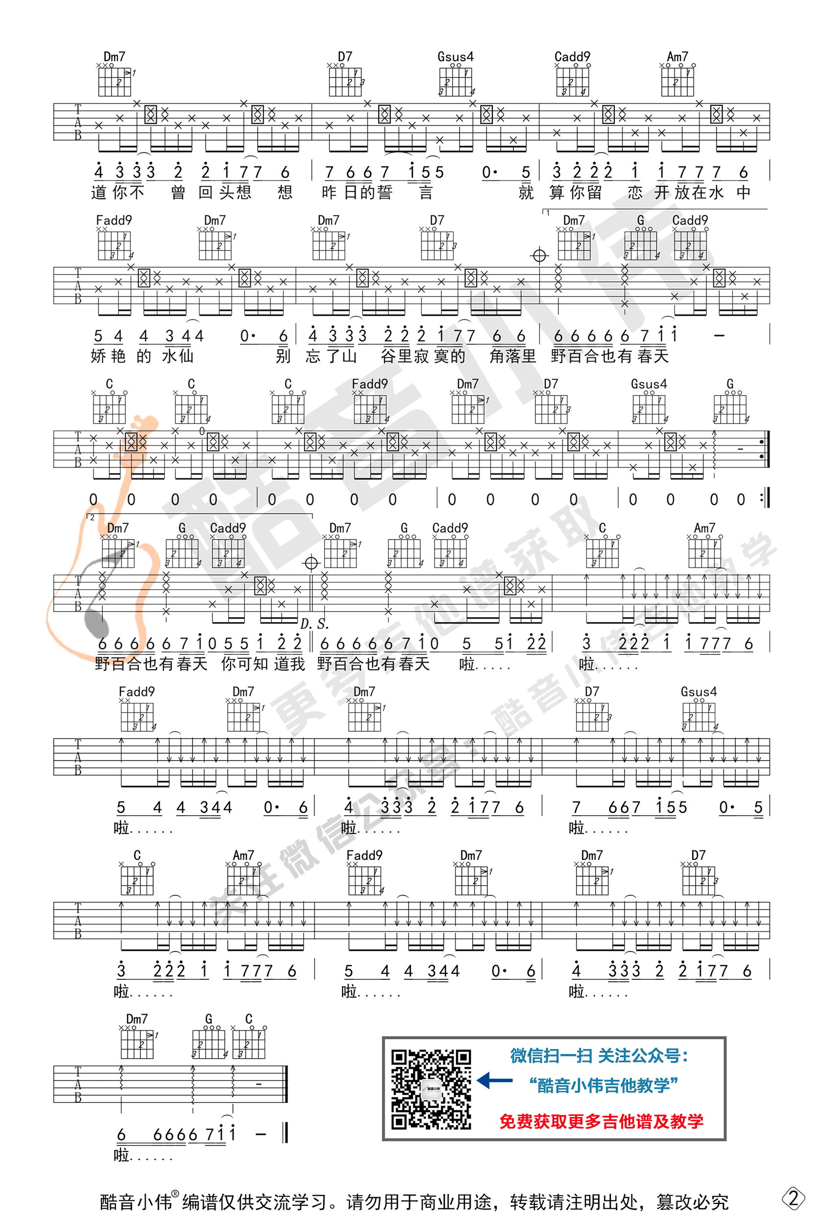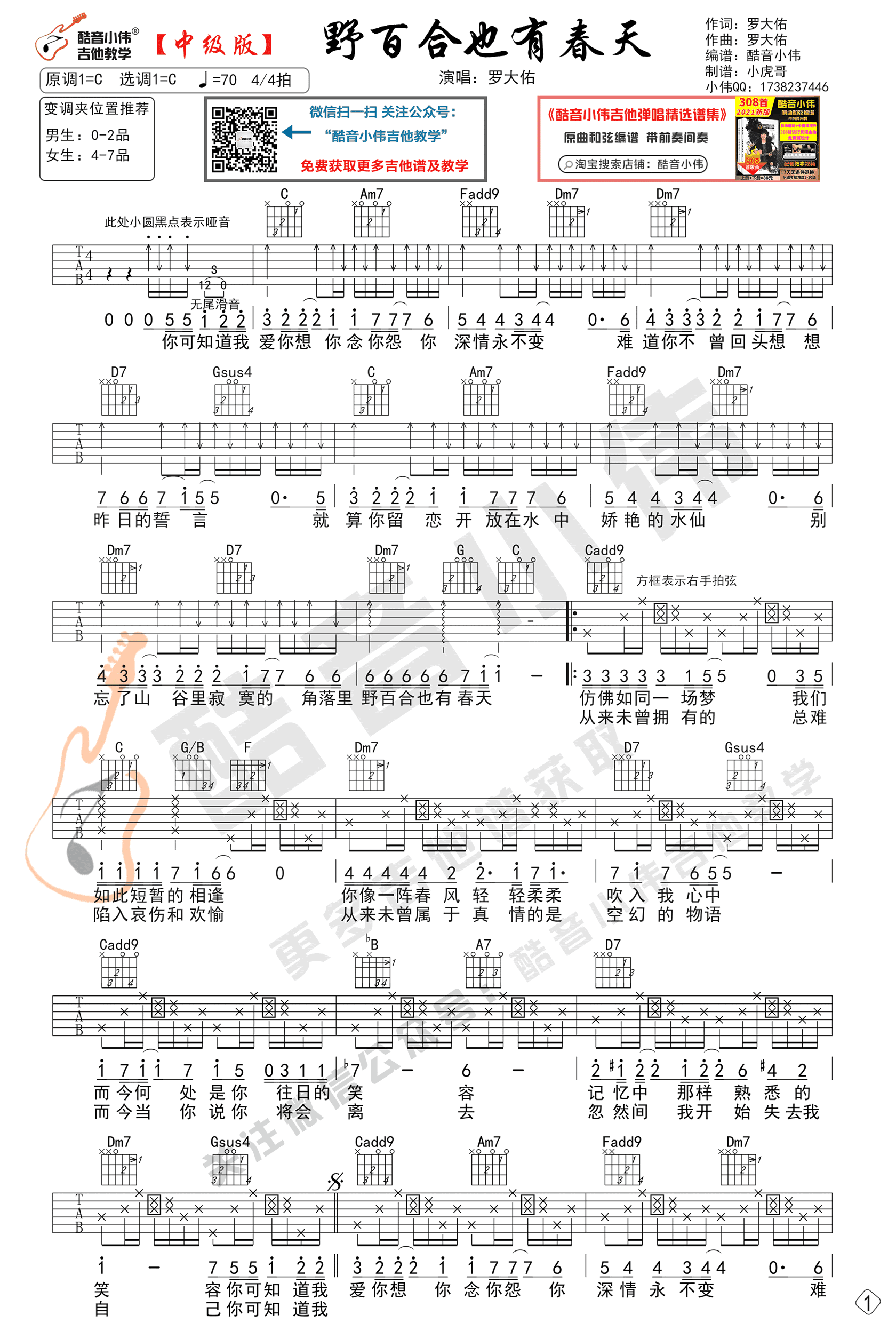 - 野百合也有春天吉他谱_罗大佑_C调中级版_弹唱教学视频
