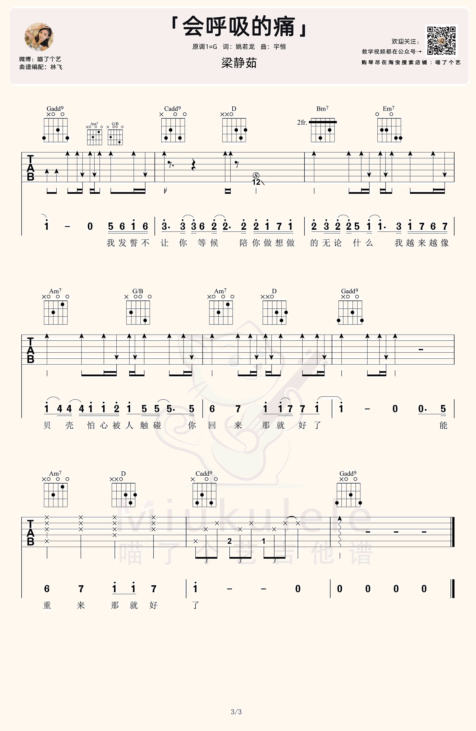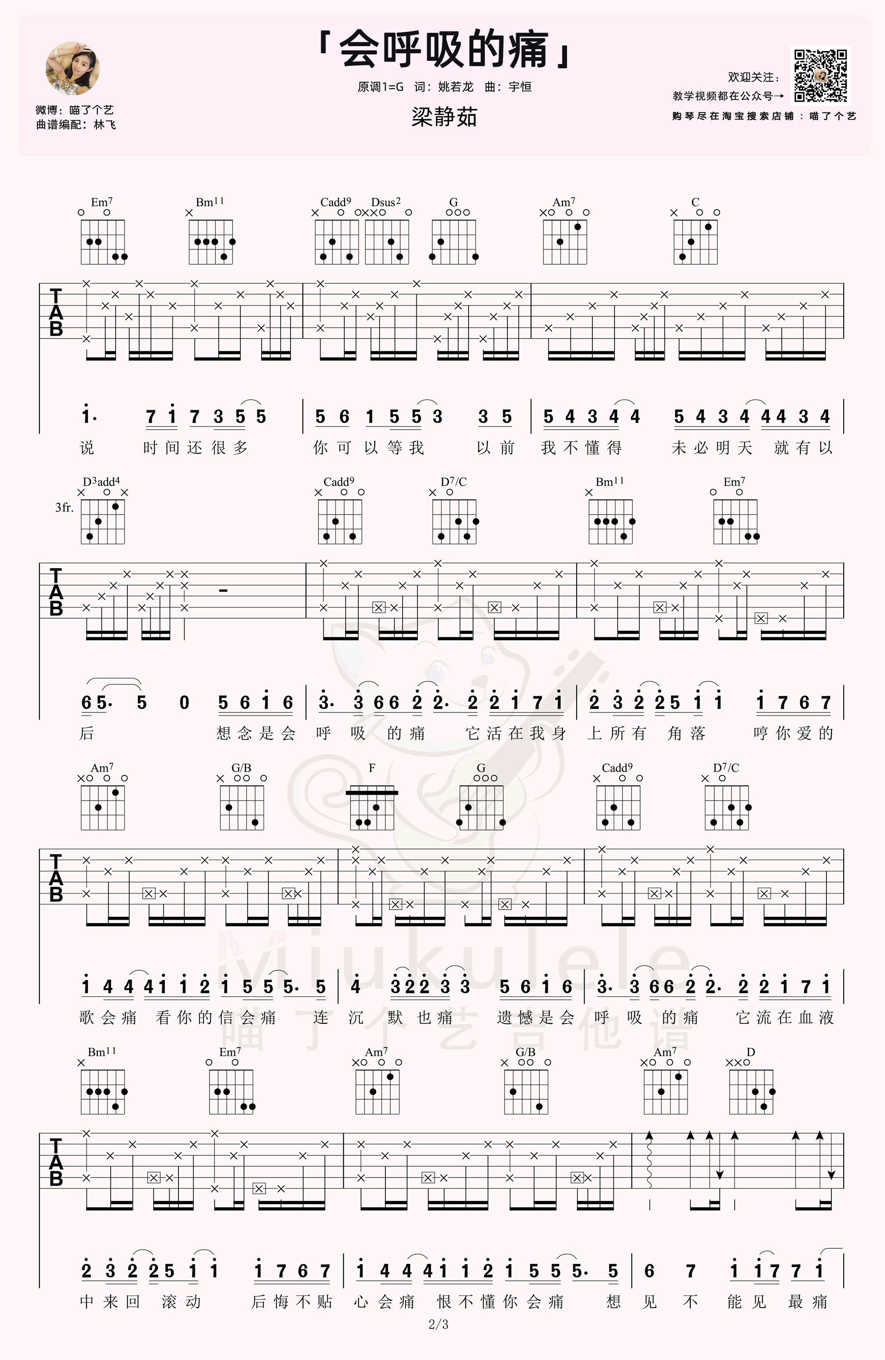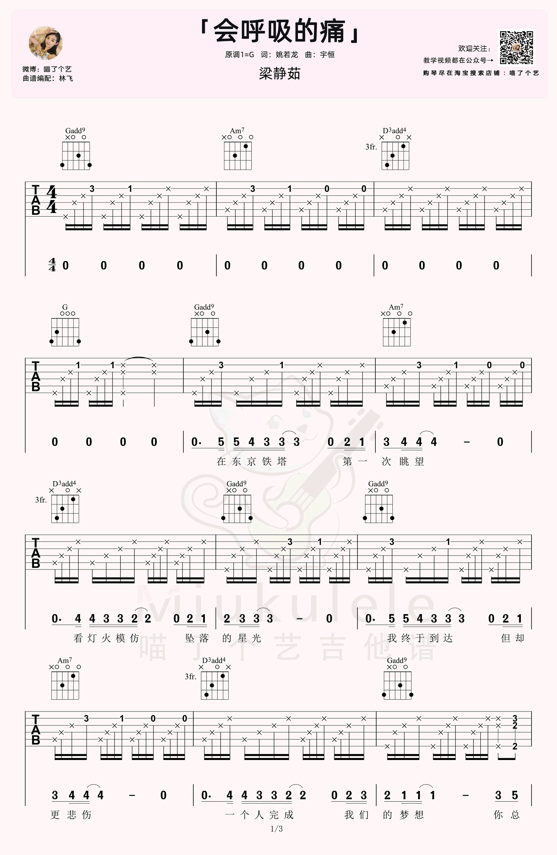 - 会呼吸的痛吉他谱_G调_梁静茹_弹唱教学视频