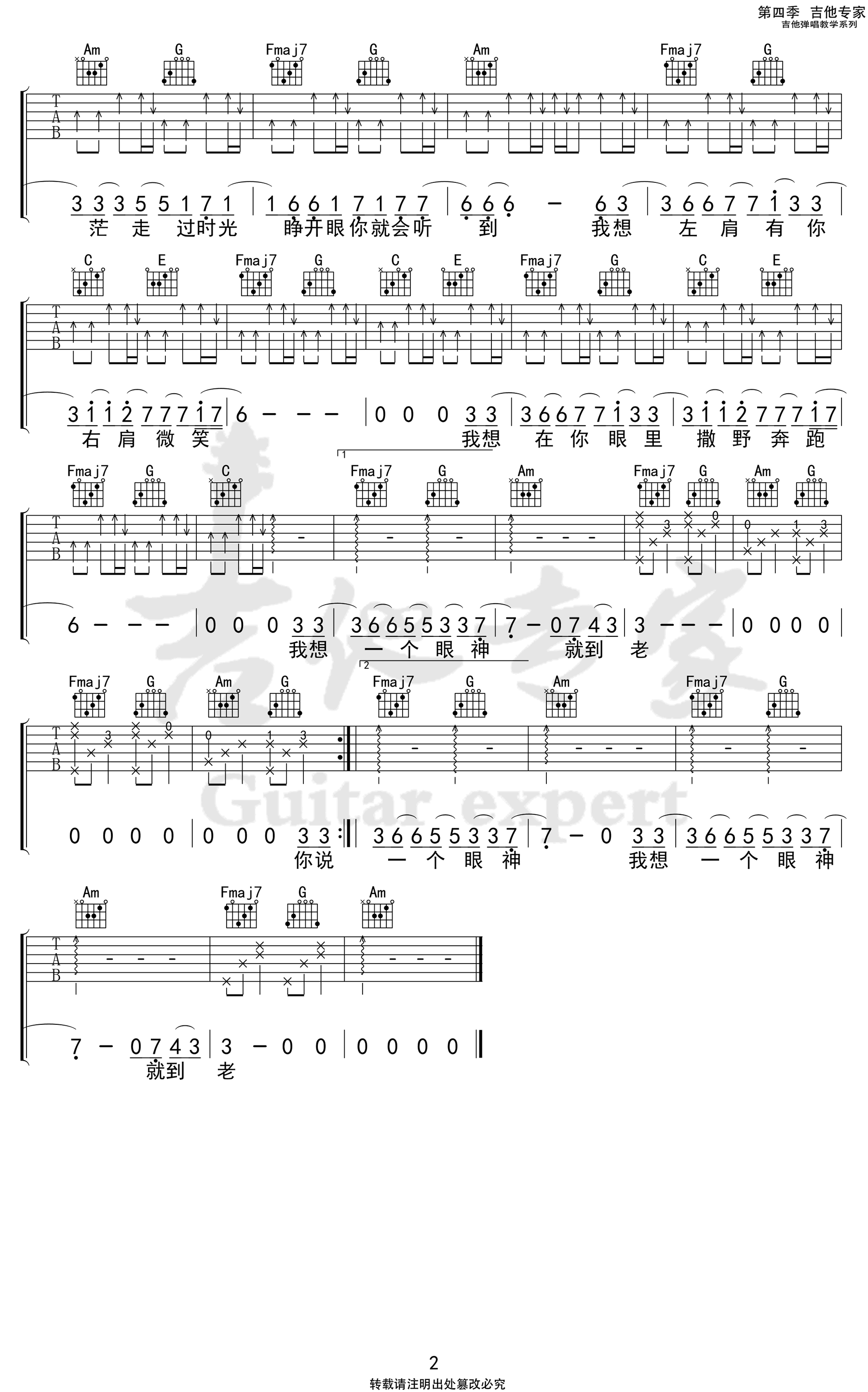 - 我想要吉他谱G调_盖君炎_吉他弹唱谱_高清版