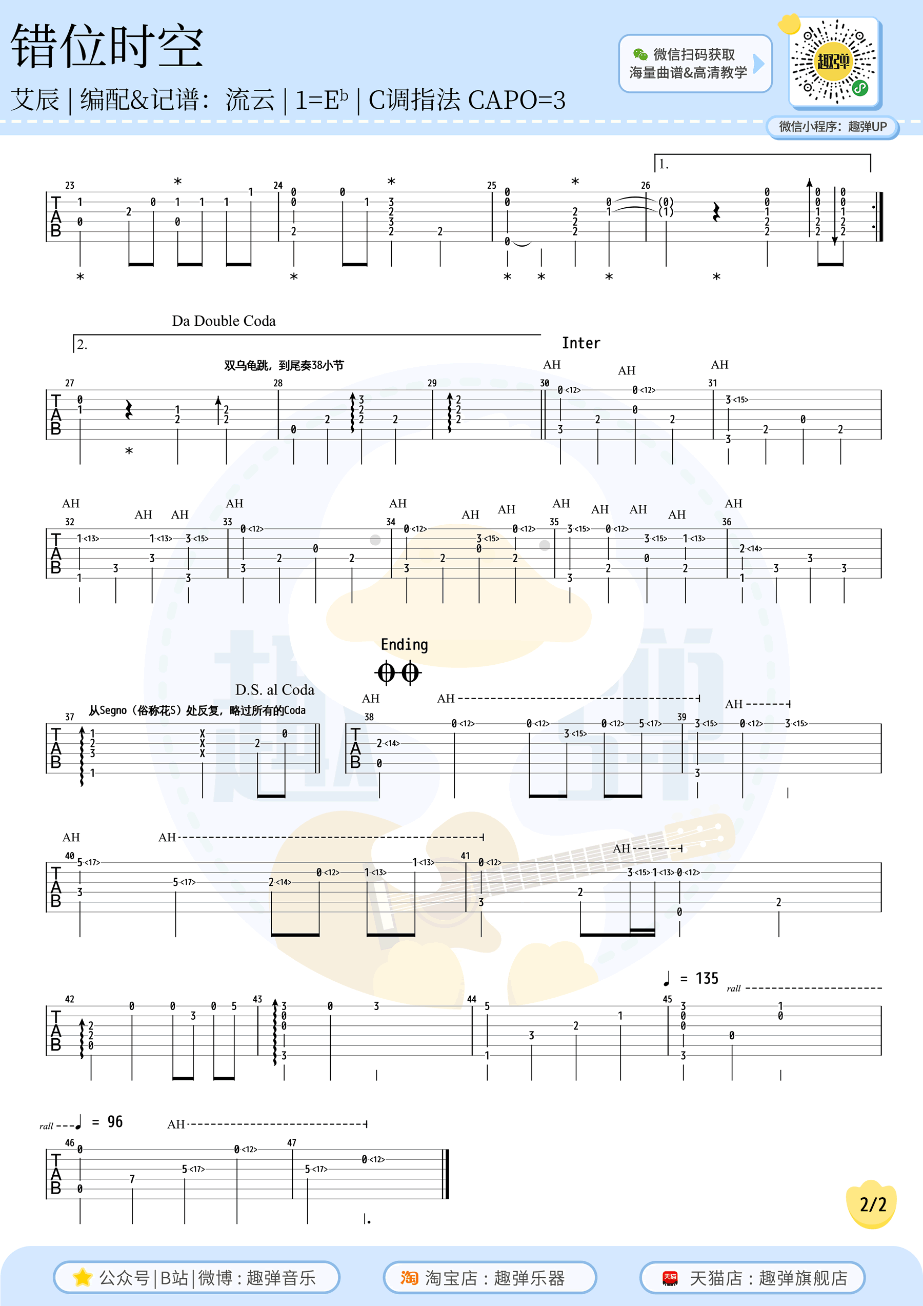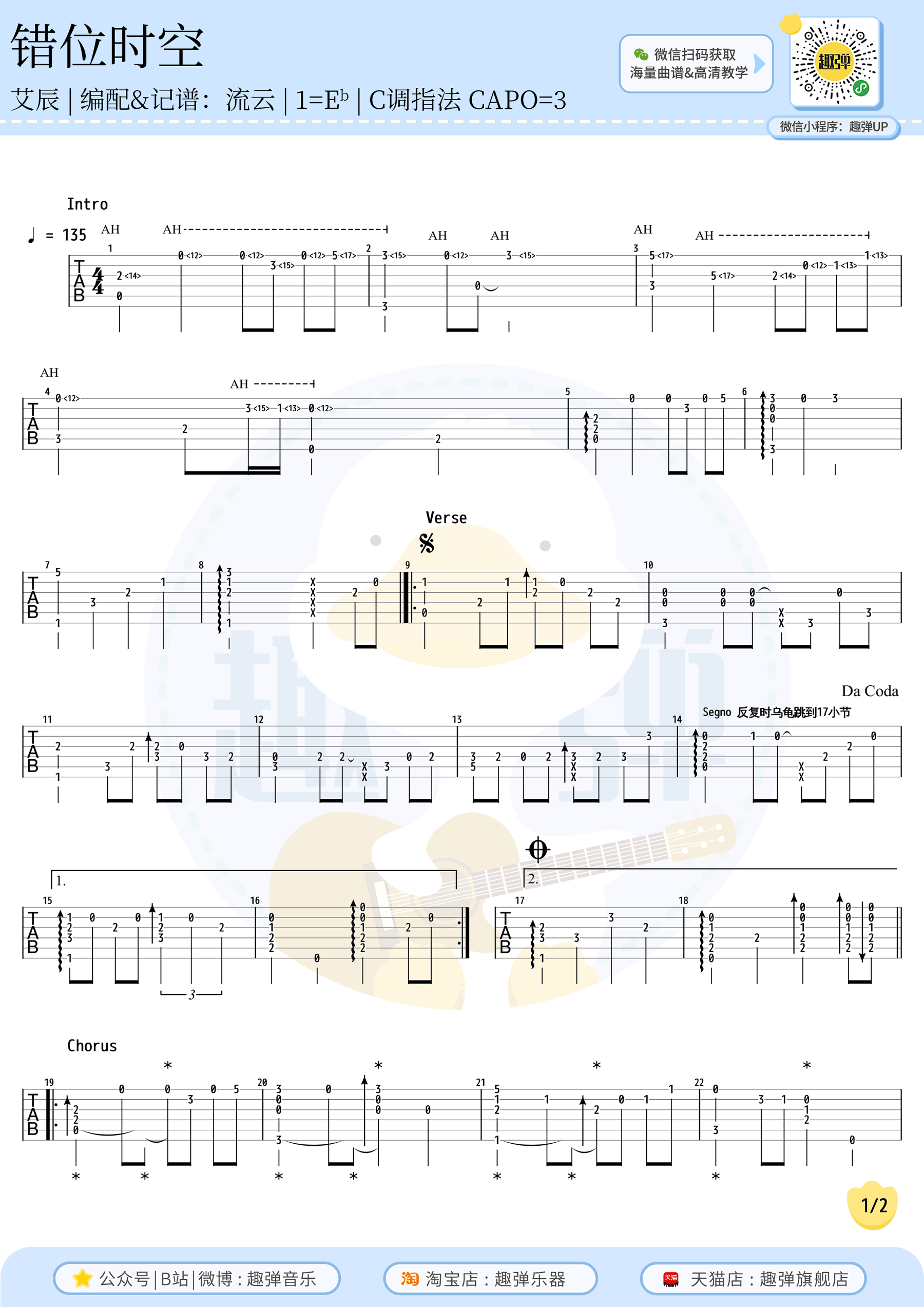 - 错位时空指弹谱_C调泛音版_吉他独奏谱_指弹演示视频