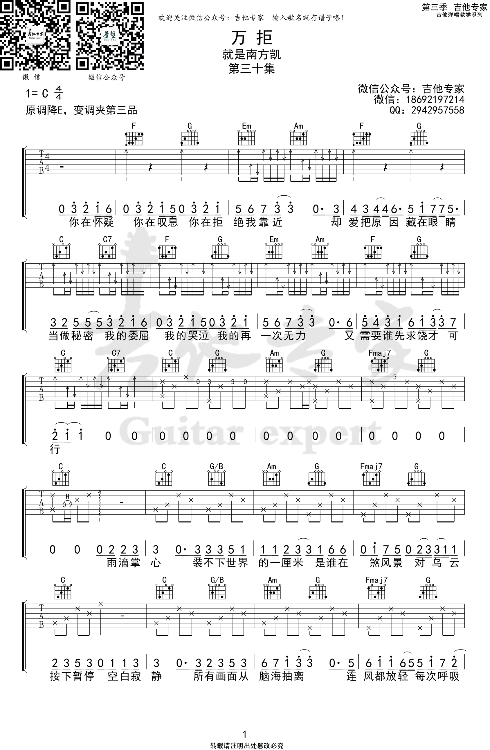 - 万拒吉他谱_就是南方凯_C调弹唱谱_高清图片谱