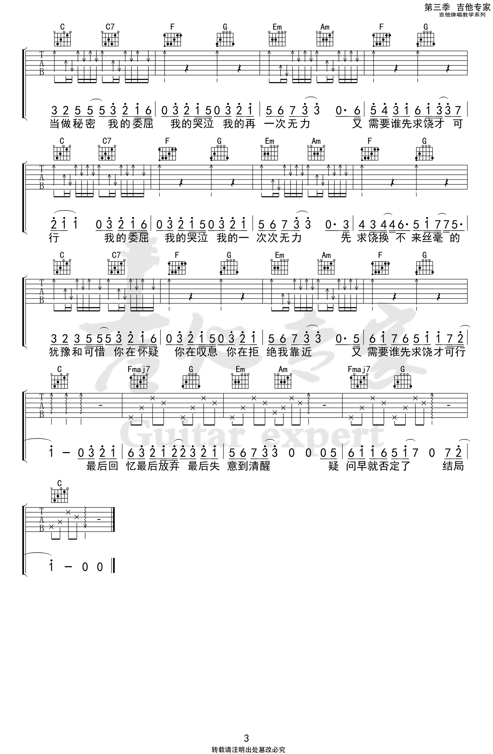 - 最后的人吉他谱_杨小壮_C调原版_弹唱六线谱