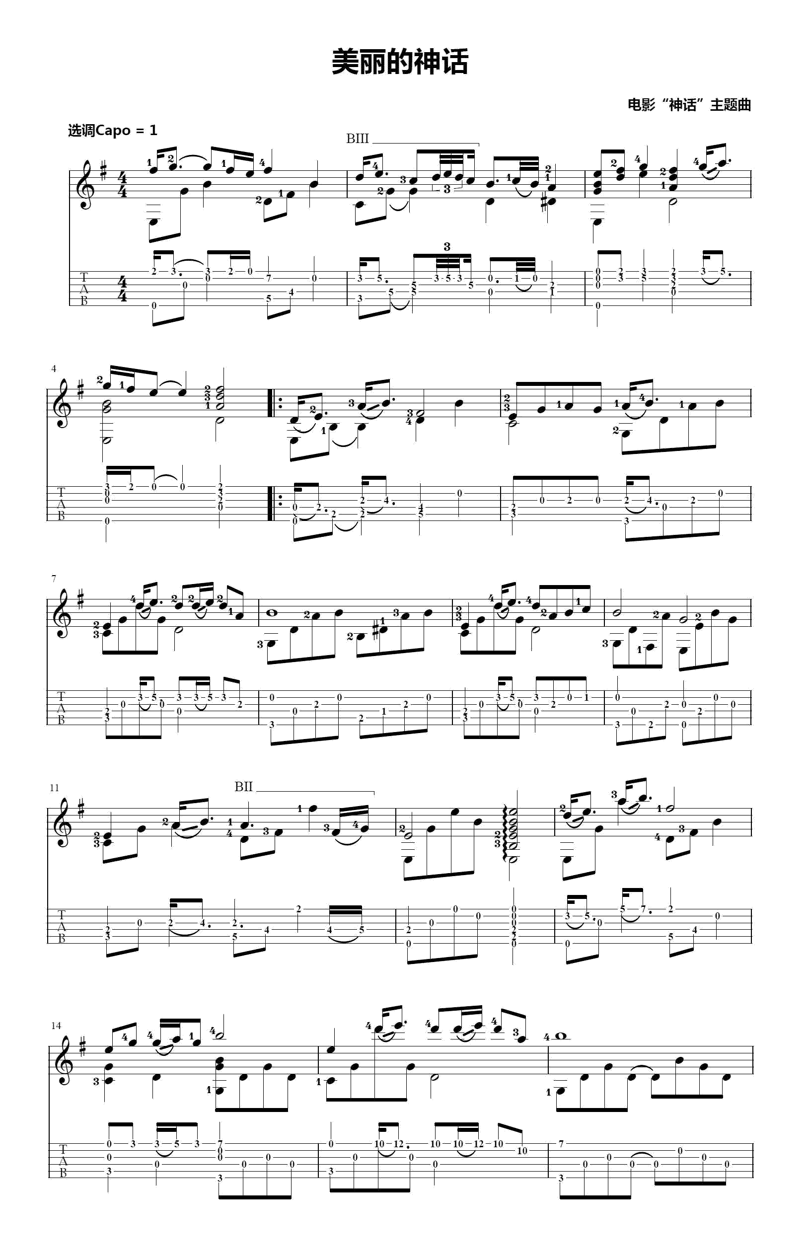 - 美丽的神话指弹谱_韩红/孙楠_吉他独奏谱_指弹演示视频