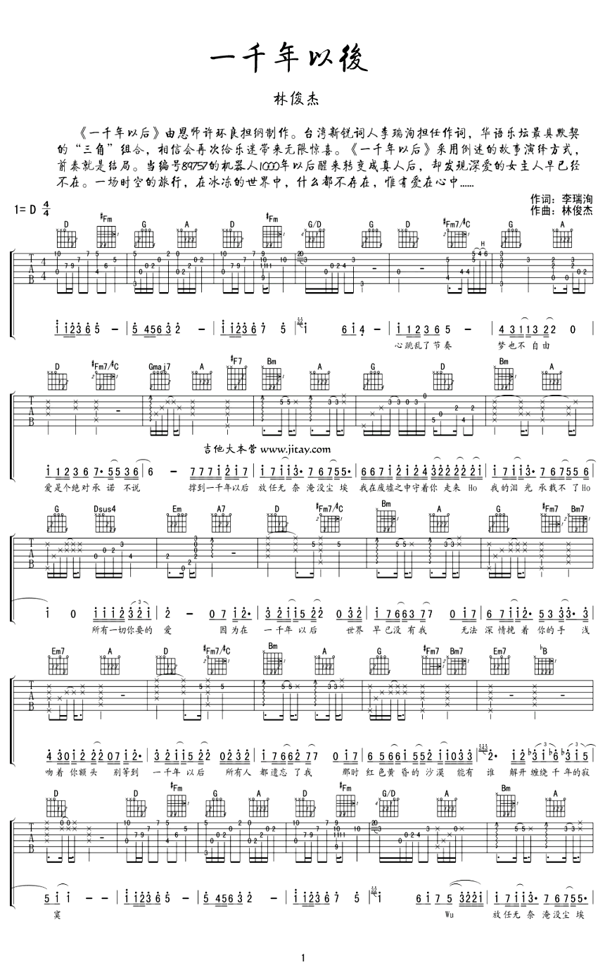 - 一千年以后吉他谱_林俊杰_C调简单版_图片谱