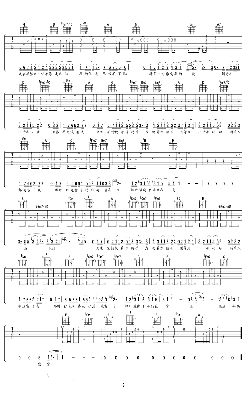- 飞云之下吉他谱_韩红/林俊杰_G调六线谱