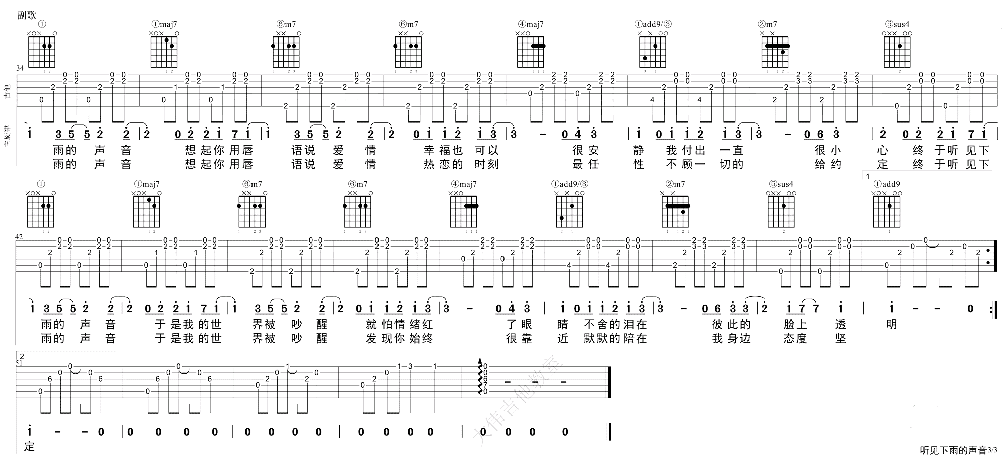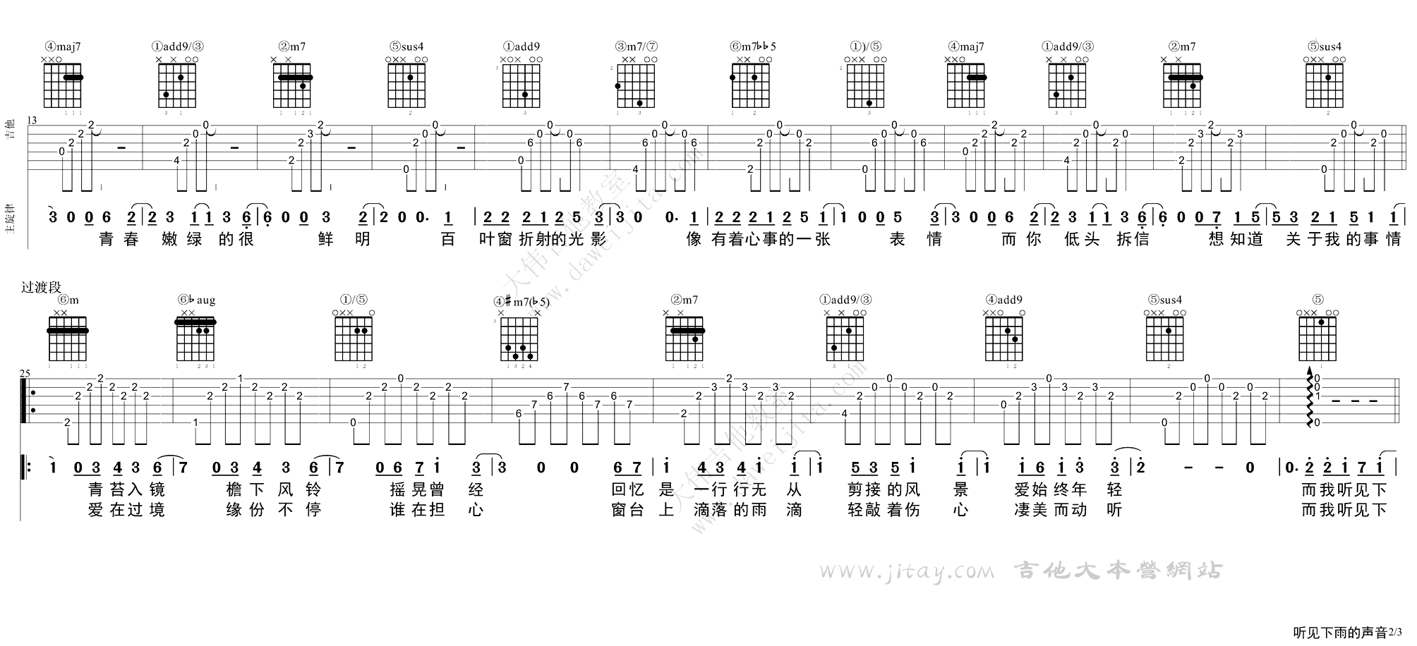 - 听见下雨的声音吉他谱_弹唱教学视频_周杰伦/关诗敏