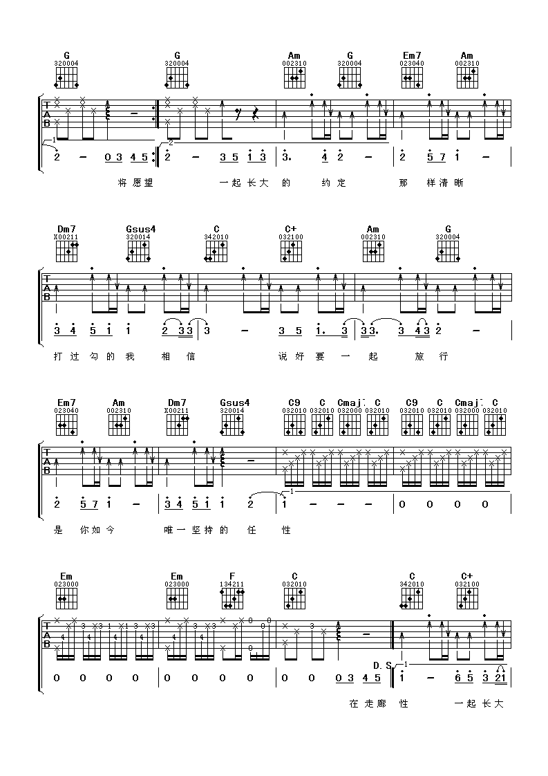 - 周杰伦《蜗牛》吉他谱 六线谱高清版 C调弹唱谱