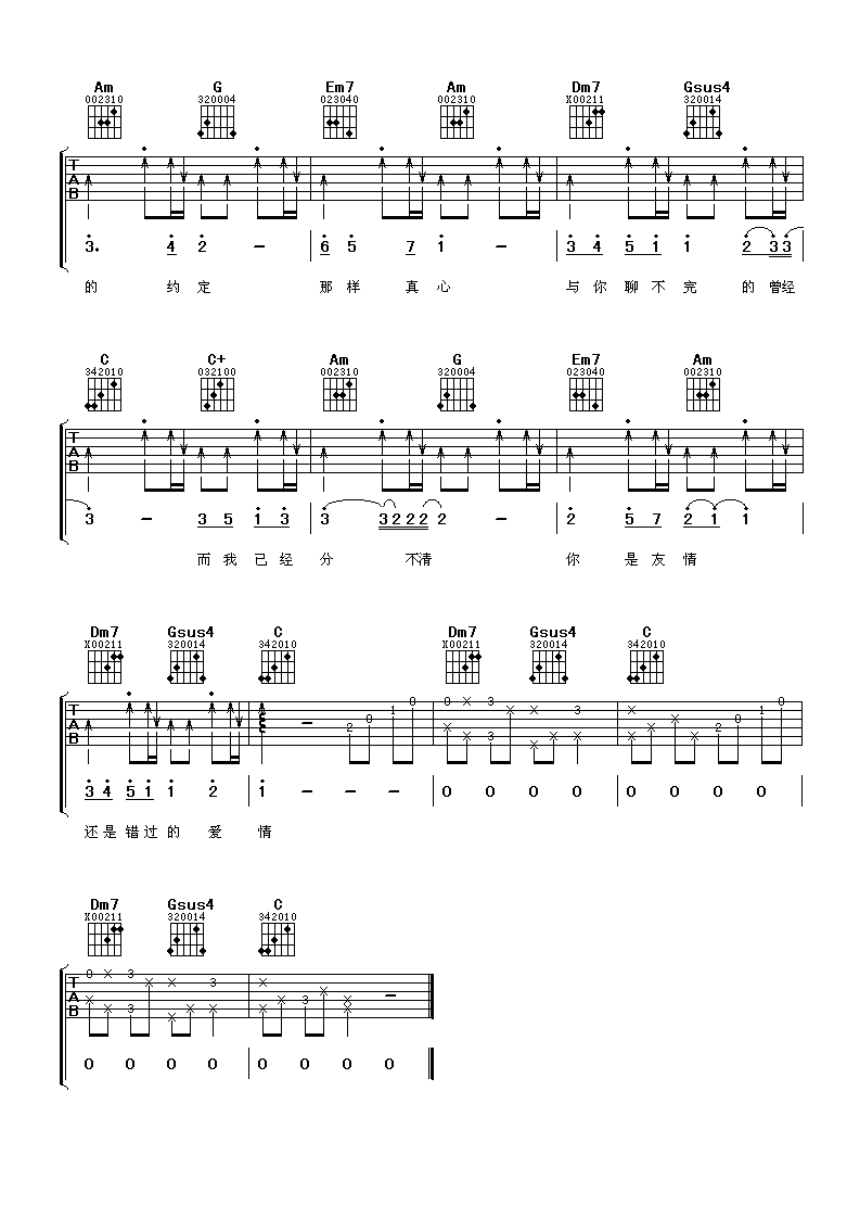 - 暗号吉他谱_周杰伦_暗号六线谱_D调弹唱谱