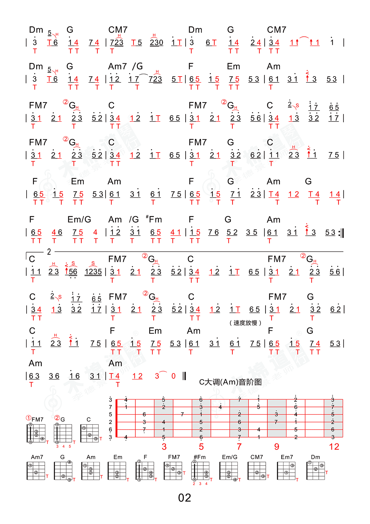 - 薛之谦《暧昧》指弹谱 C调 吉他独奏谱