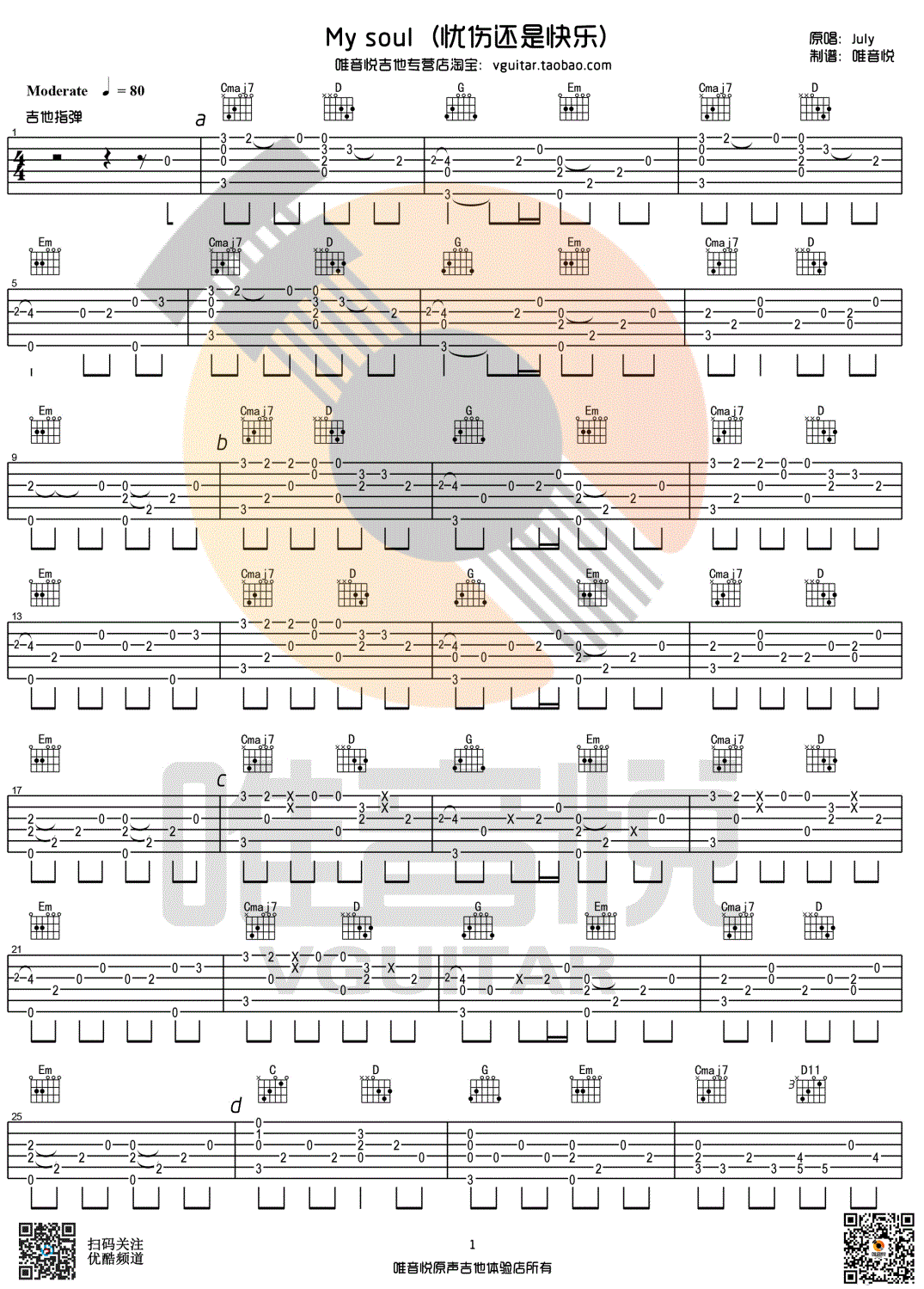 - Canon in D 指弹谱 D大调卡农吉他独奏谱 指弹吉他视频