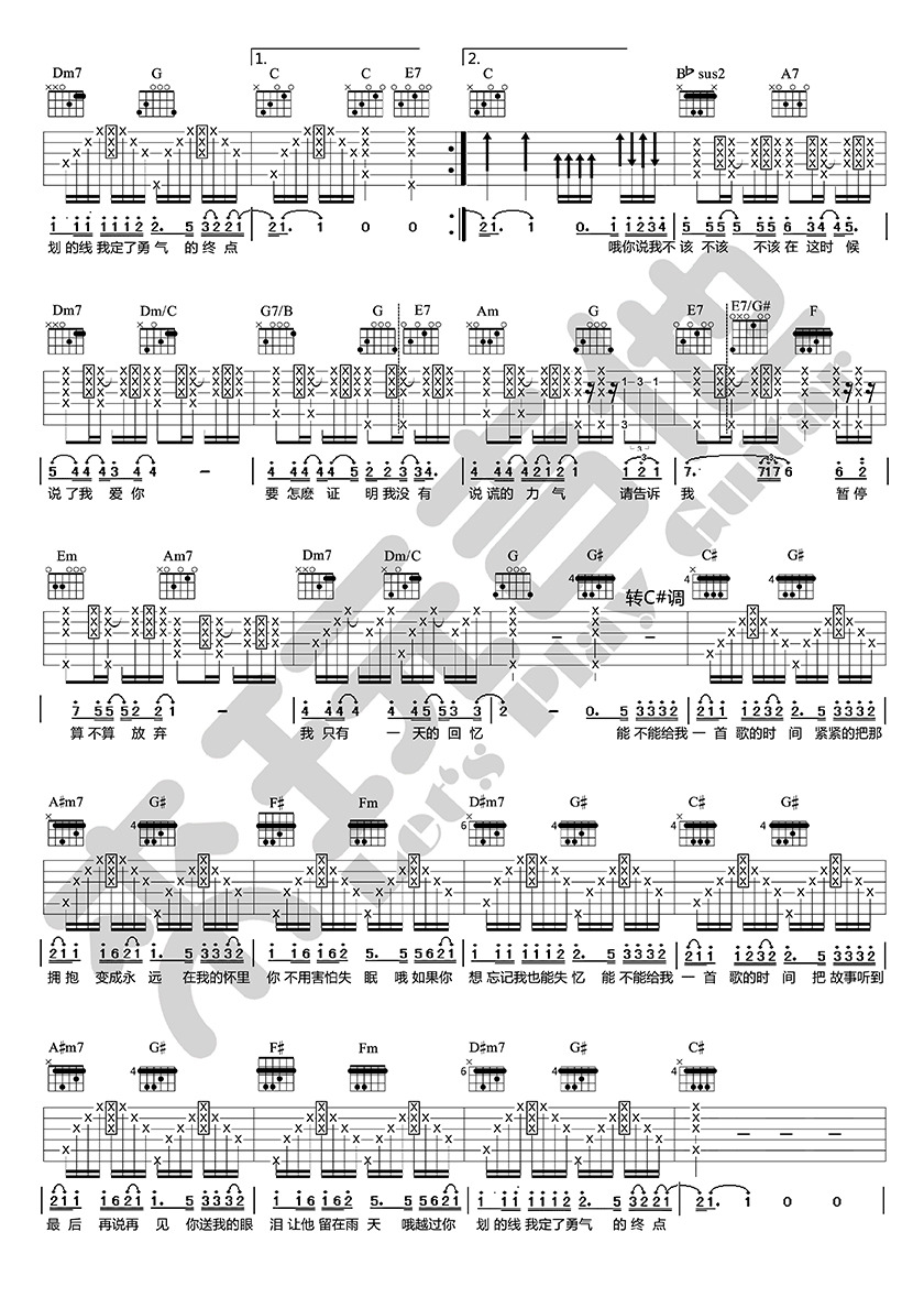 - 周杰伦《蜗牛》吉他谱 六线谱高清版 C调弹唱谱