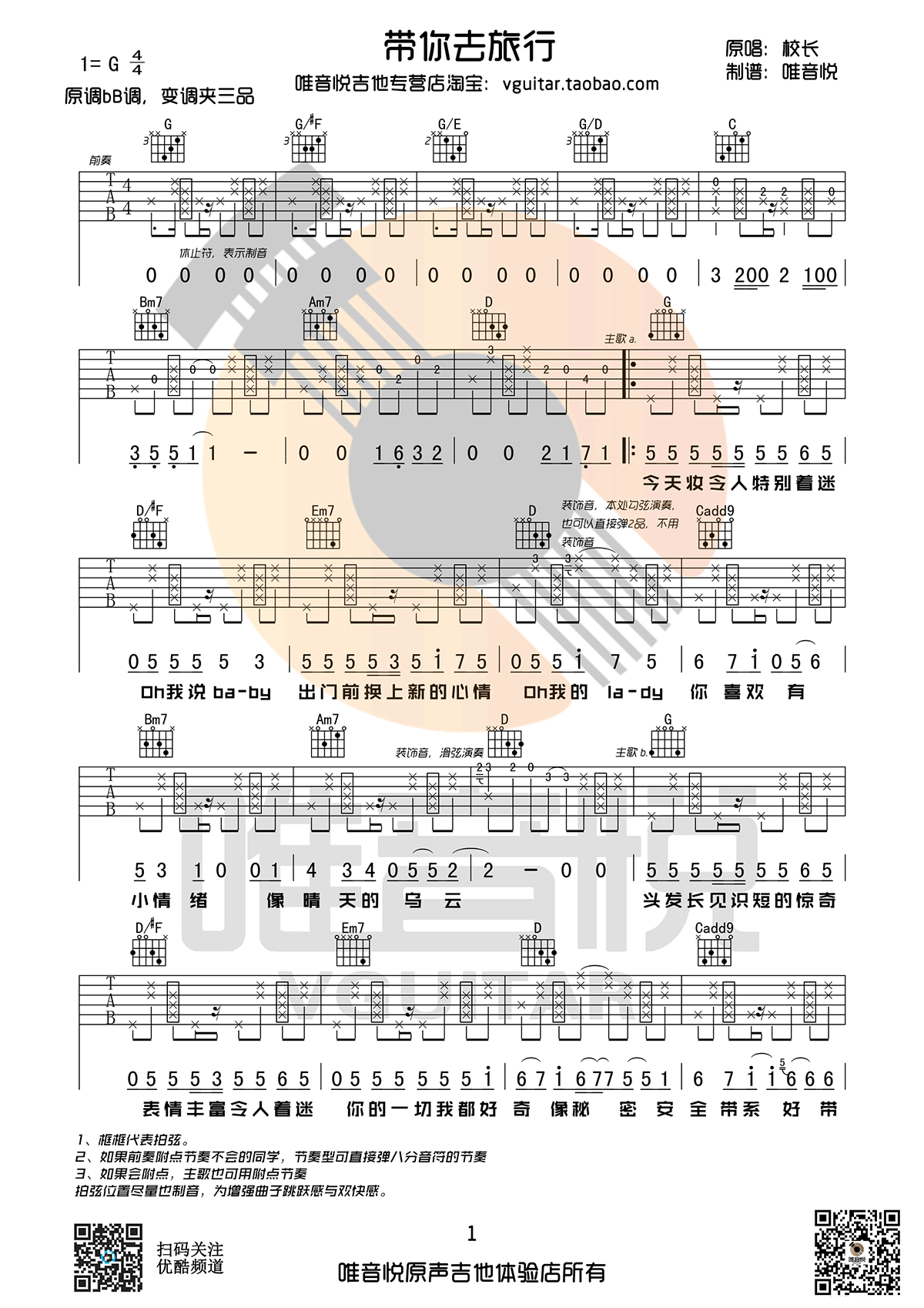 - 带你去旅行吉他谱 校长 G调弹唱谱 六线谱高清版