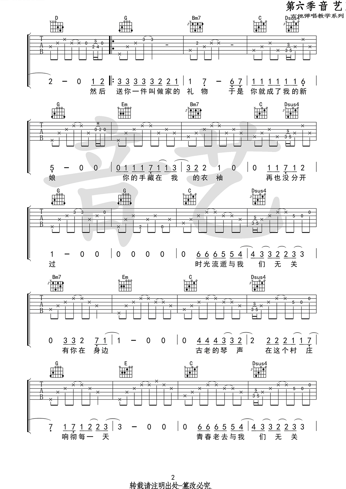 - 谢春花《借我》吉他谱 G调弹唱谱 高清六线谱