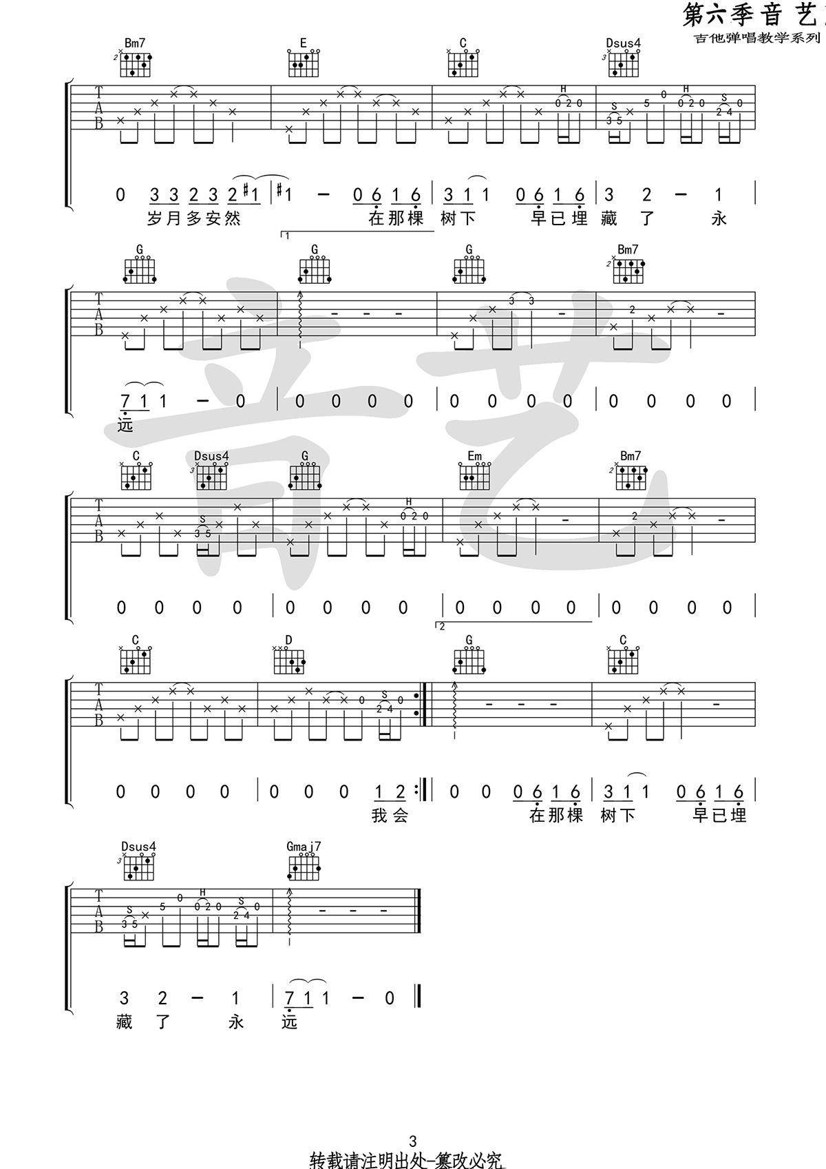 - 差三岁吉他谱 JAM G调指法 弹唱六线谱