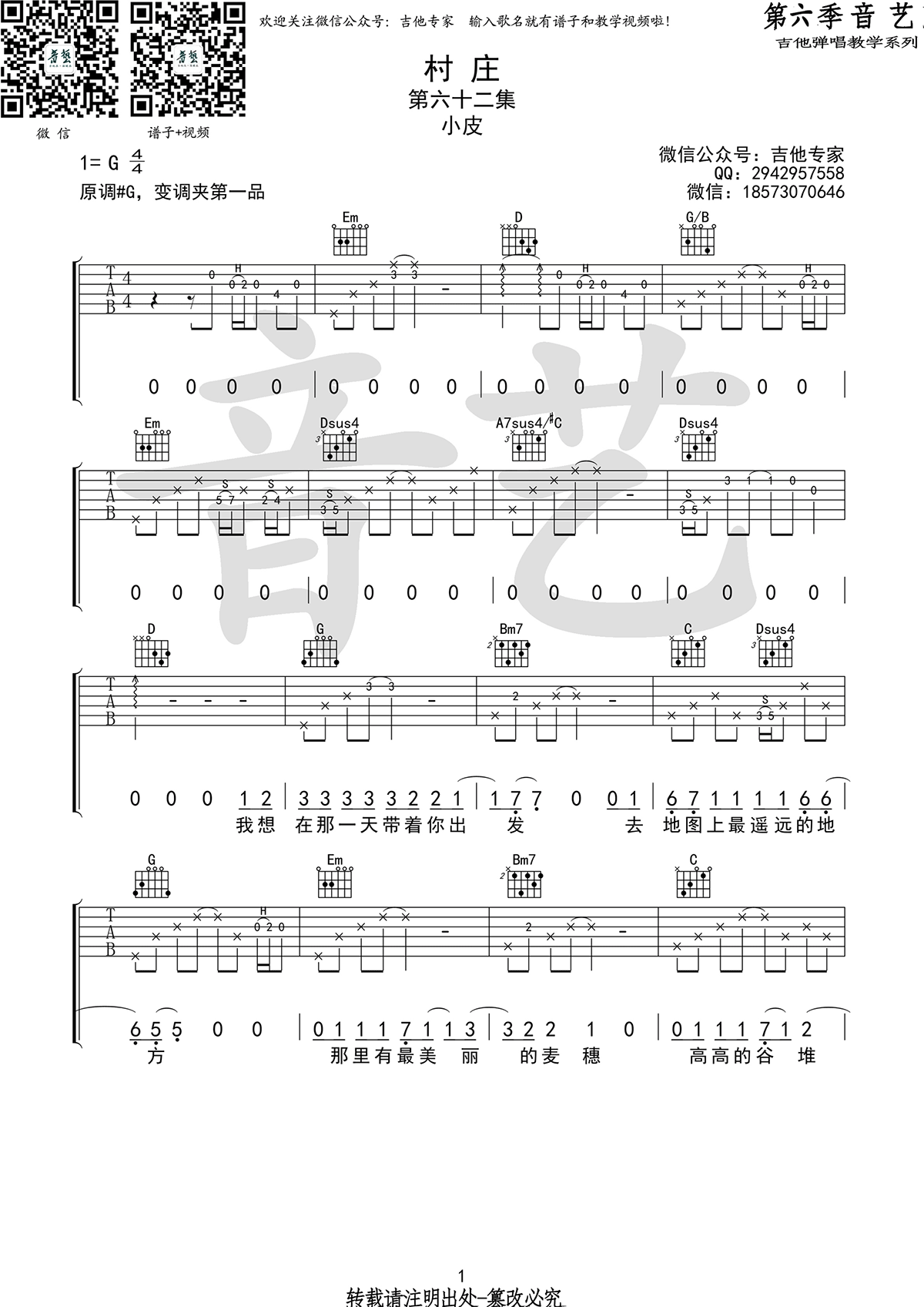- 思凡六线谱 晓月老板《思凡》吉他谱 G调简单版