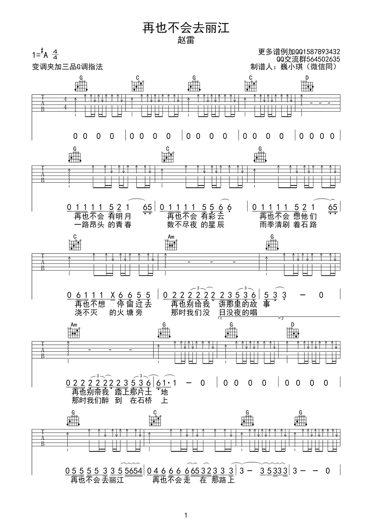 - 鼓楼吉他谱 赵雷 G调弹唱谱 高清图片谱