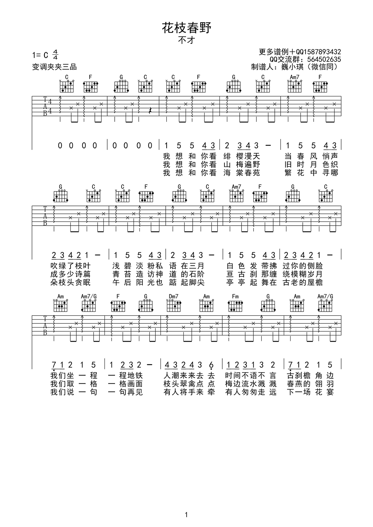 - 林中鸟吉他谱 葛林 C调弹唱谱 图片谱