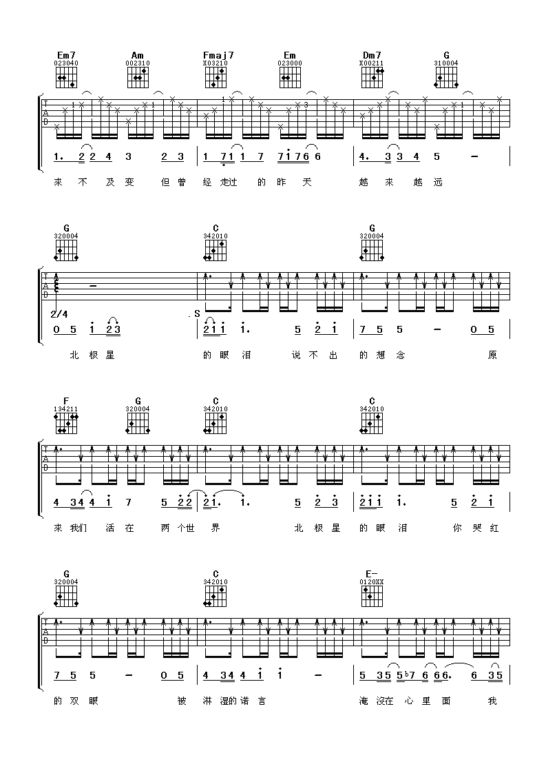 北极星的眼泪 (《微笑pasta》电视剧片尾曲) 歌词 词:李念和 曲:戴浪 像断了线消失人海里面 我的眼中已失去你的脸 在等你会奢望流星会出现 愿如果真的实现 爱能不能永远 明天或许来不及变 但曾经走过的昨天越来越远 北极星的眼泪说不出的想念 原来我们活在两个世界 北极星的眼泪你哭红的双眼 被淋湿的诺言淹没在心里面 我抬头看着爱不见 在等你会奢望流星会出现 愿如果真的实现 爱能不能永远 明天或许来不及变 但曾经走过的昨天越来越远 北极星的眼泪说不出的想念 原来我们活在两个世界 北极星的眼泪你哭红的双眼 被淋湿的诺言淹没在心里面 我抬头看着爱不见 当对的人等不到对的时间 就在放开双手的瞬间 爱撕成两边 北极星的眼泪说不出的想念 原来我们活在两个世界 北极星的眼泪你哭红的双眼 被淋湿的诺言淹没在心里面 我抬头看着爱不见 整个宇宙都流眼泪