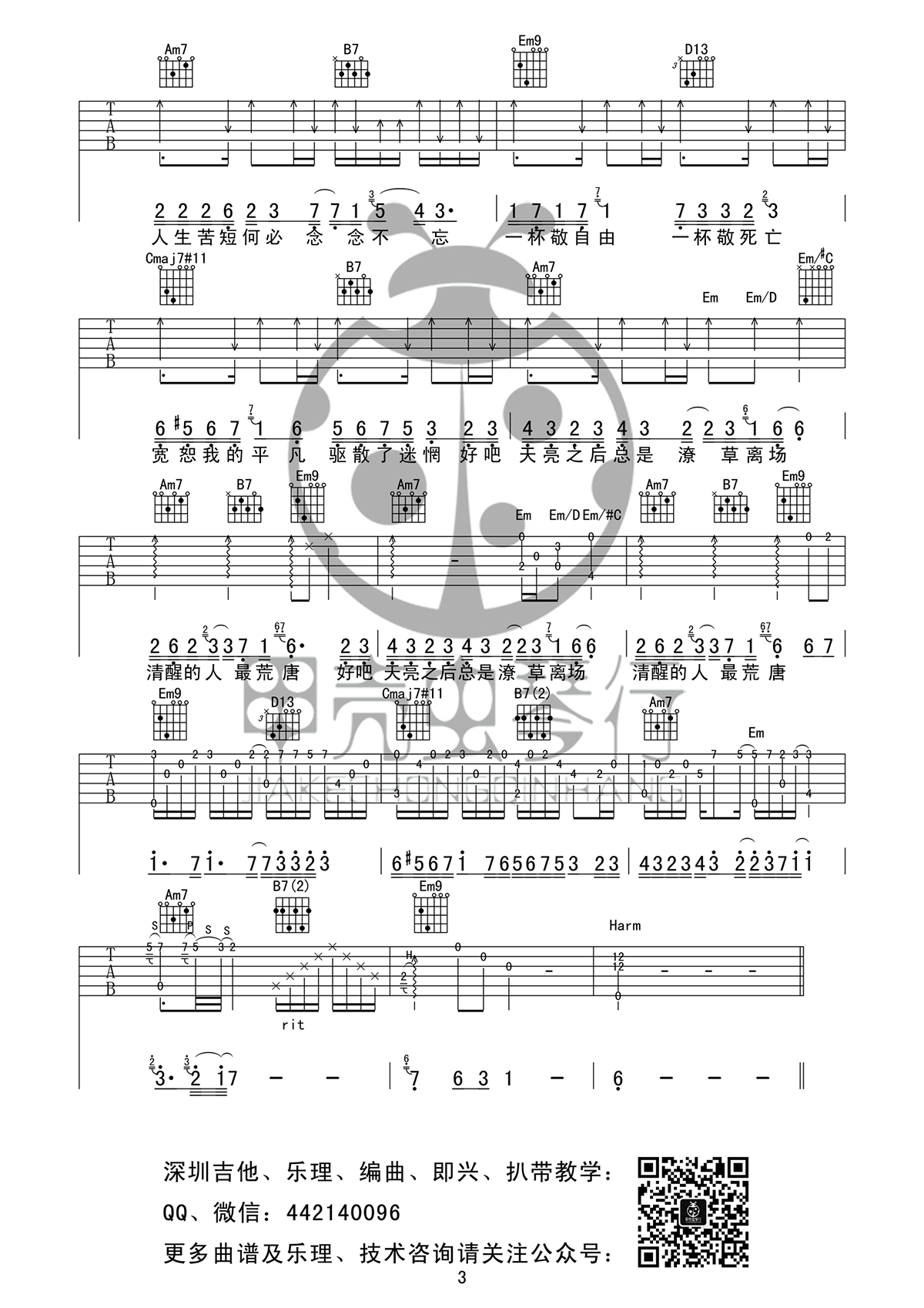 - 《等》吉他谱 毛不易 高清弹唱谱 《等》六线谱