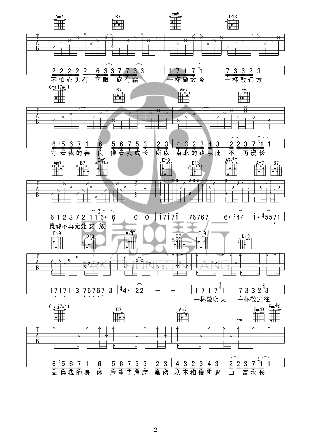 - 毛不易消愁吉他谱 原版弹唱六线谱 高清图片谱