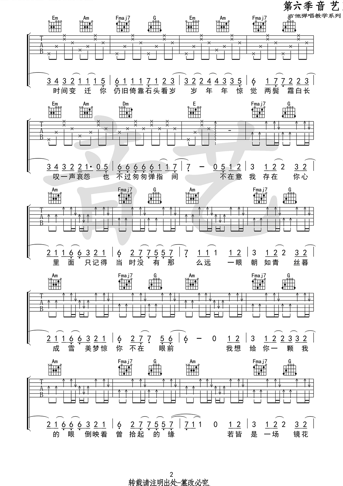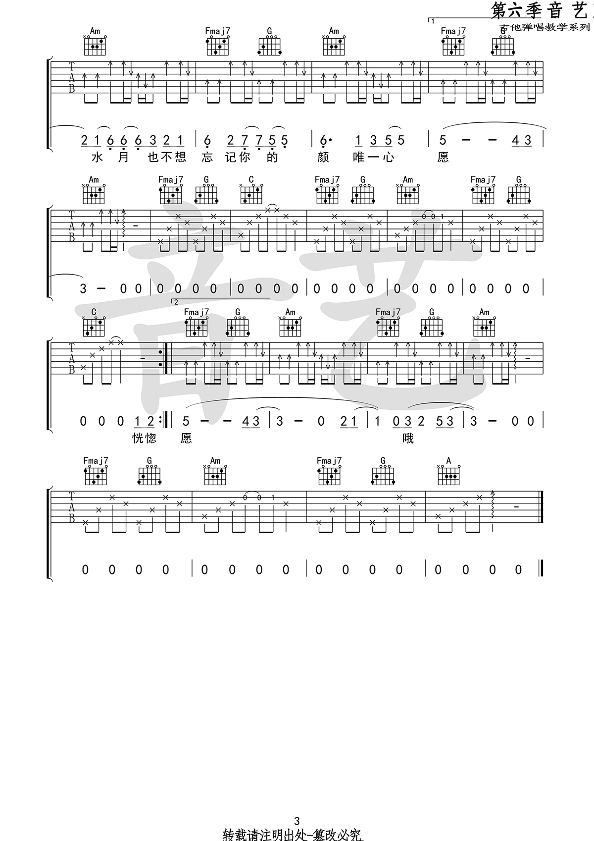 - 思凡六线谱 晓月老板《思凡》吉他谱 G调简单版