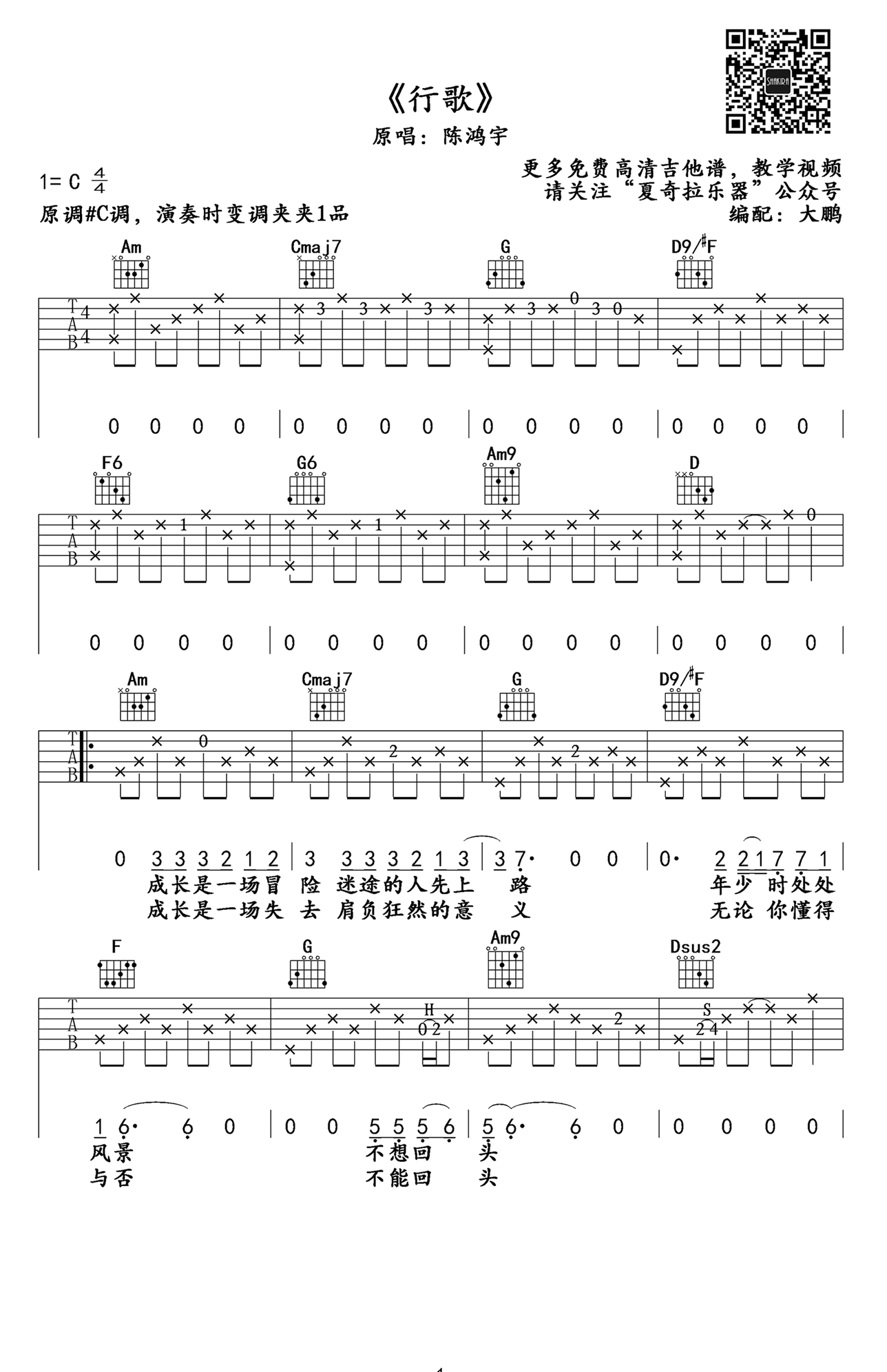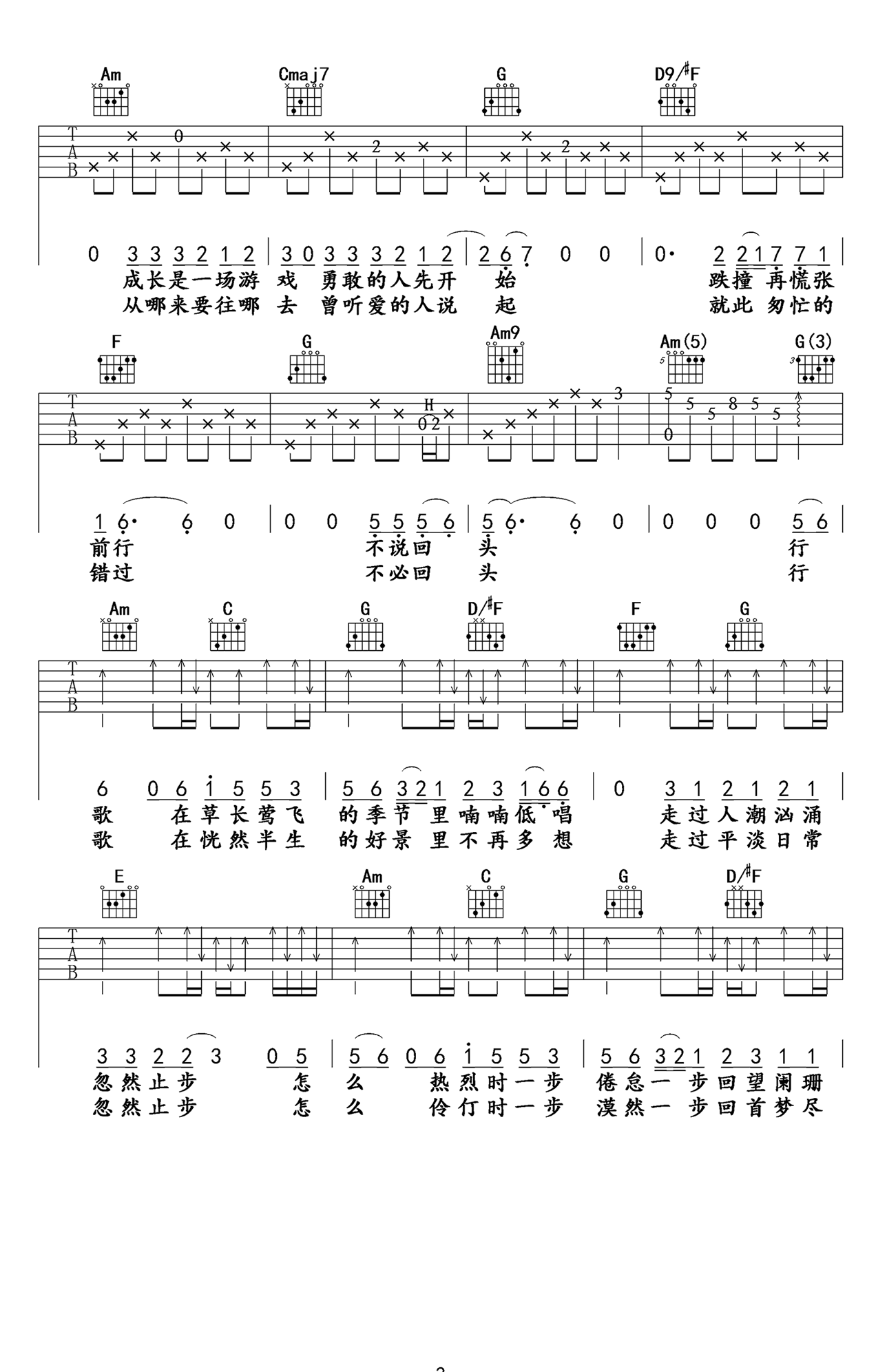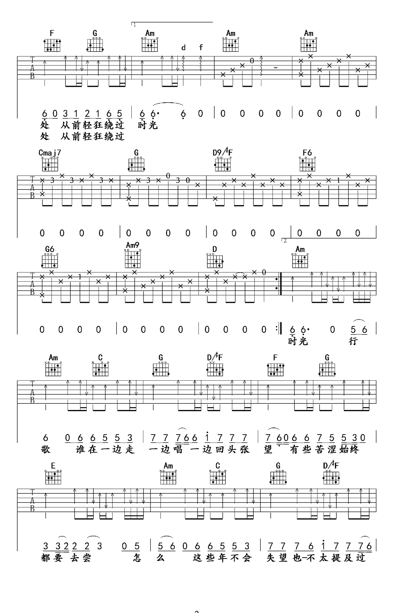- 追光者吉他谱 C调弹唱谱 岑宁儿《追光者》六线谱