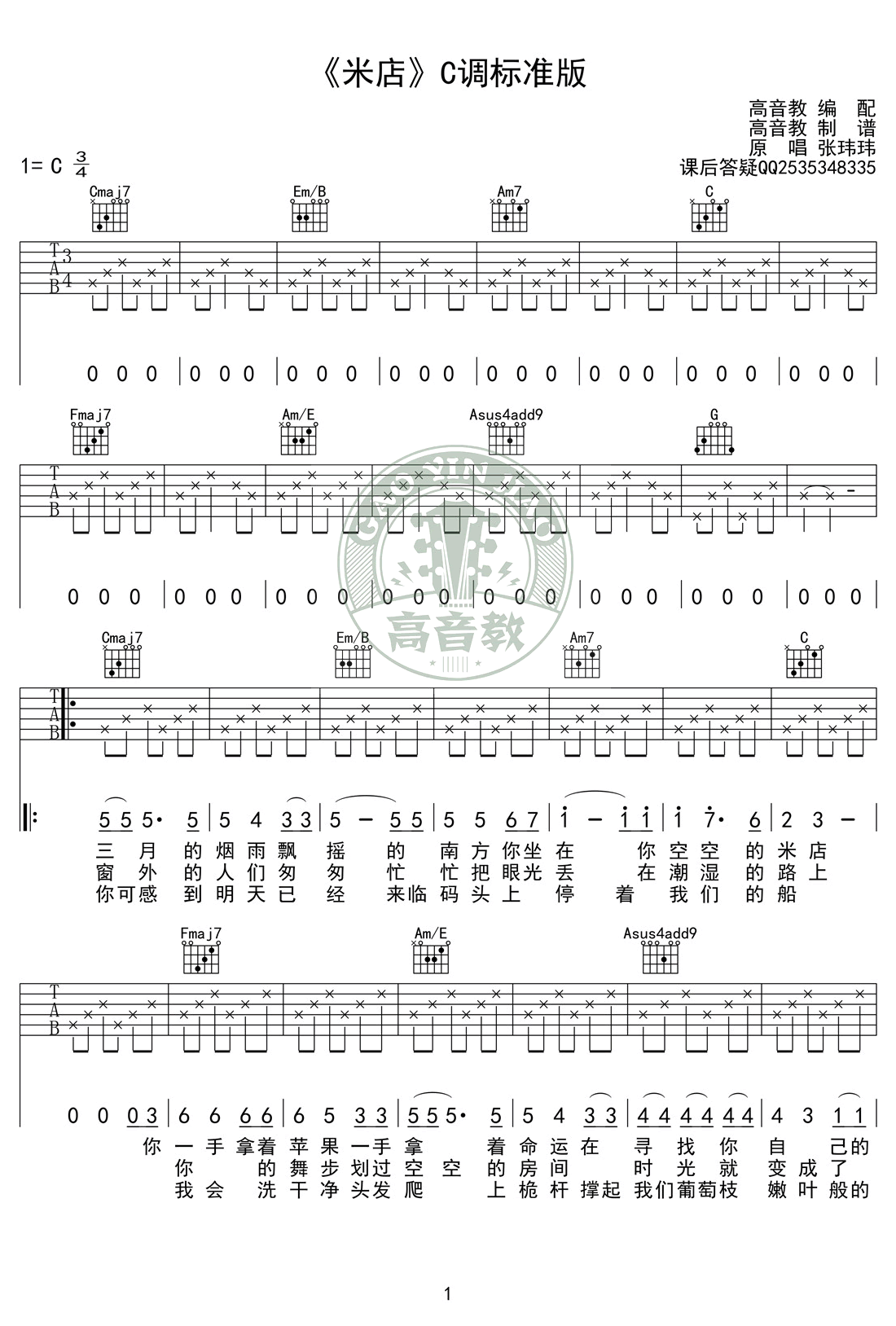 - 可能否吉他谱 木小雅 C调弹唱谱 高清图片谱