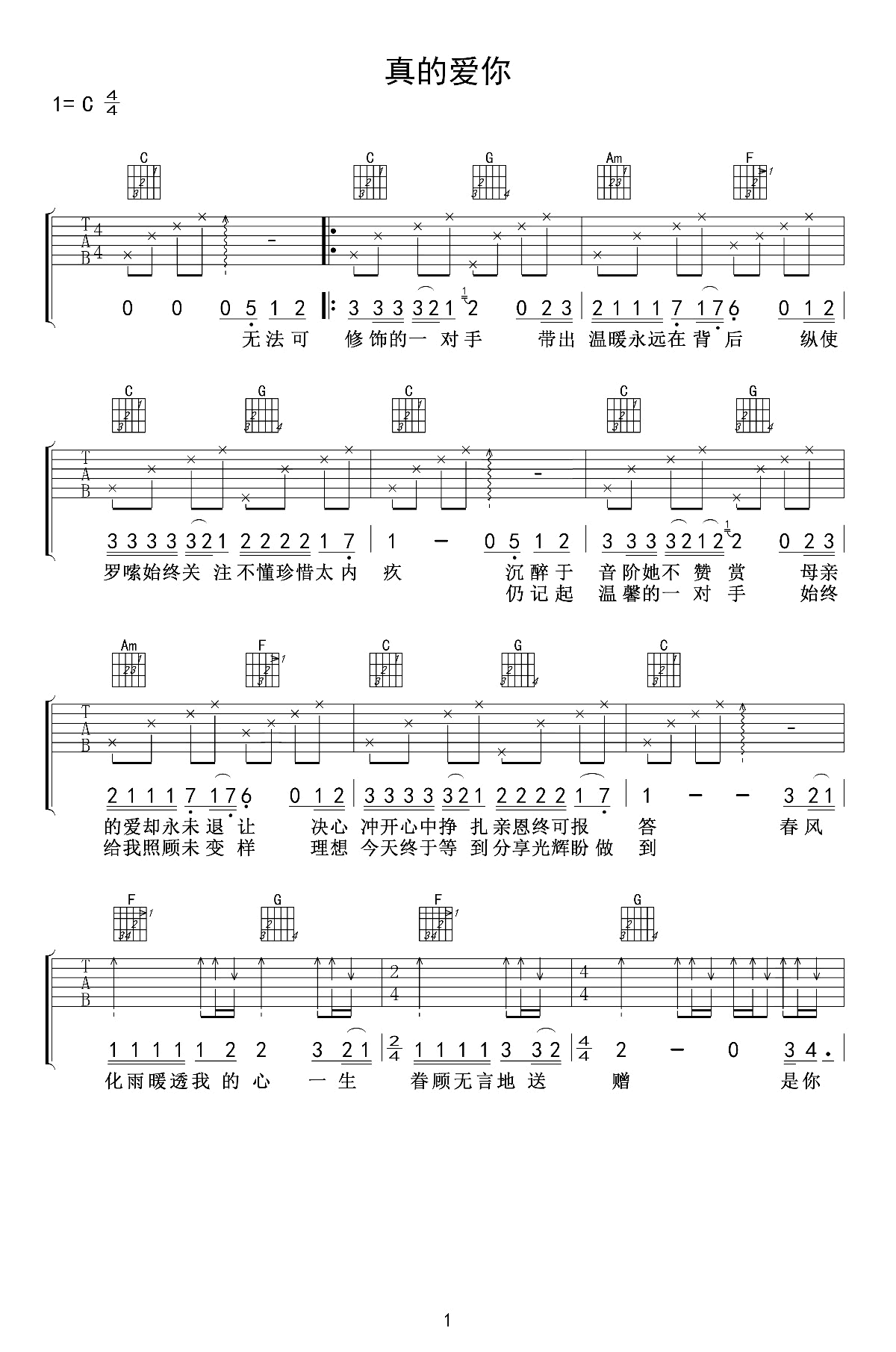 Beyond 真的爱你吉他谱,C调和弦弹唱谱,高清图片谱,真的爱你六线谱,爱德文吉他编配,陈佰老师提供配套吉他弹唱教学视频。易唱网上传分享。这首《真的爱你》作为1989年第四张大碟的主题歌,是继《大地》后Beyond的另一突破。歌词道出对母爱的伟大,是黄家驹在母亲节送给母亲最好的祝福。但在非洲演唱完后,这首歌不再是单纯的歌颂母爱,扩散到博爱的含义。