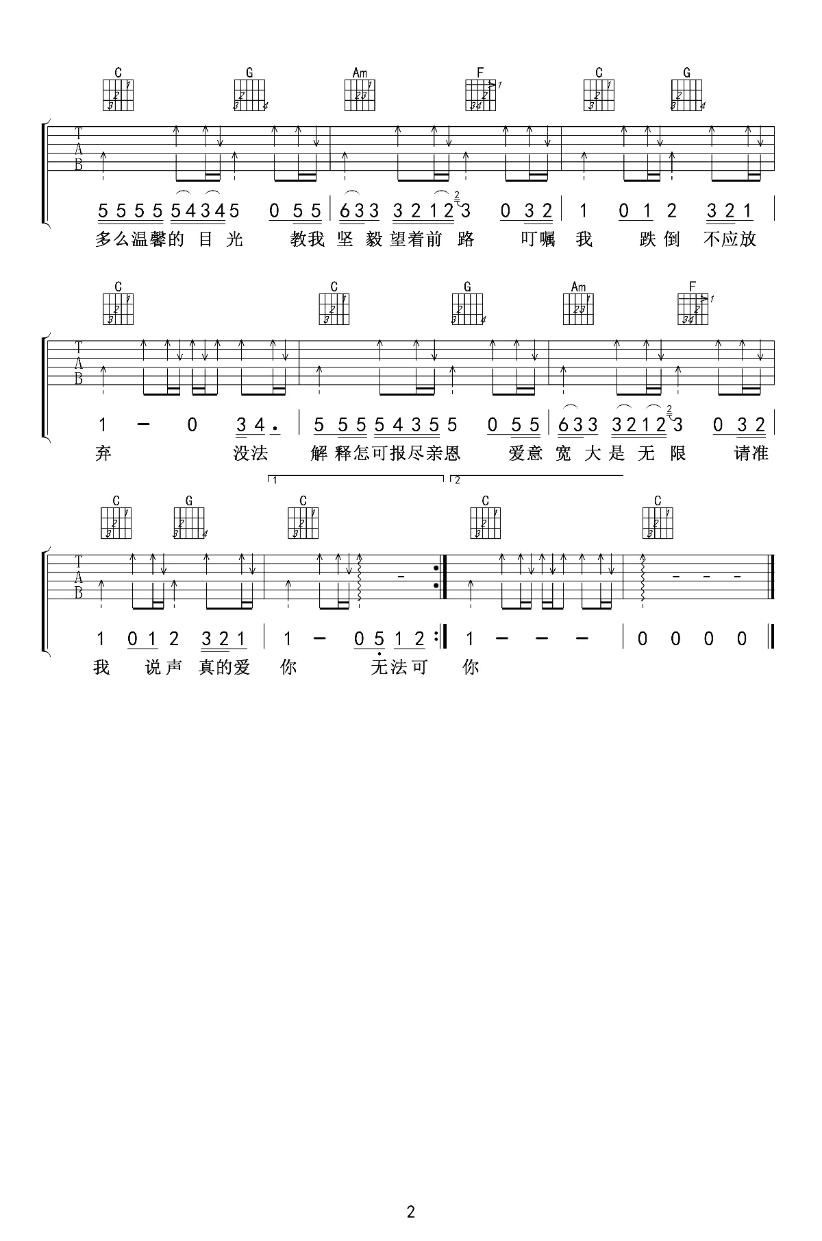 - 真的爱你吉他谱 C调简单版 Beyond 高清图片谱