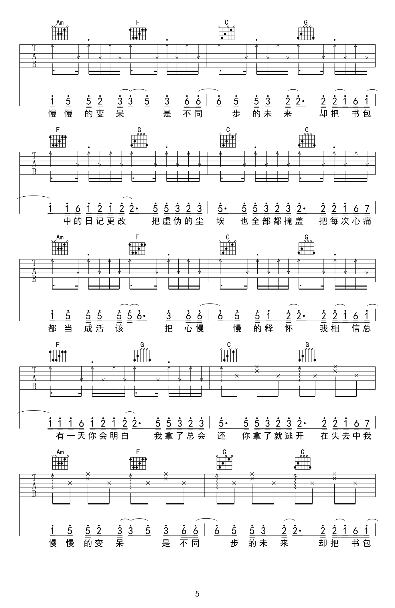 - 坐在巷口的那对男女吉他谱 自然卷 图片谱高清版