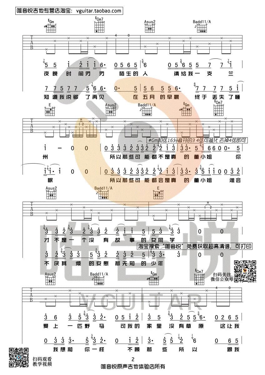- 董小姐指弹谱 宋冬野 吉他独奏谱 高清图片谱