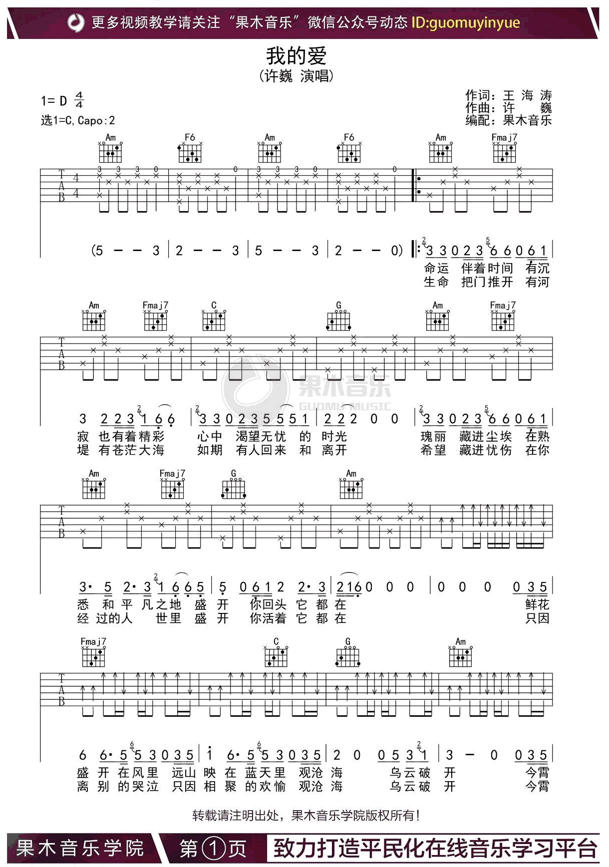 - 许巍《曾经的你》吉他谱_C调弹唱谱_高清六线谱
