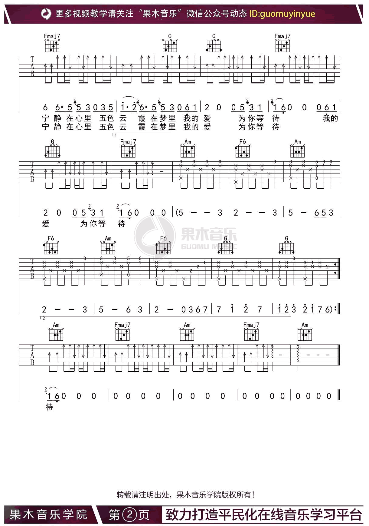 - 空谷幽兰吉他谱 许巍 C调弹唱谱 六线谱高清版