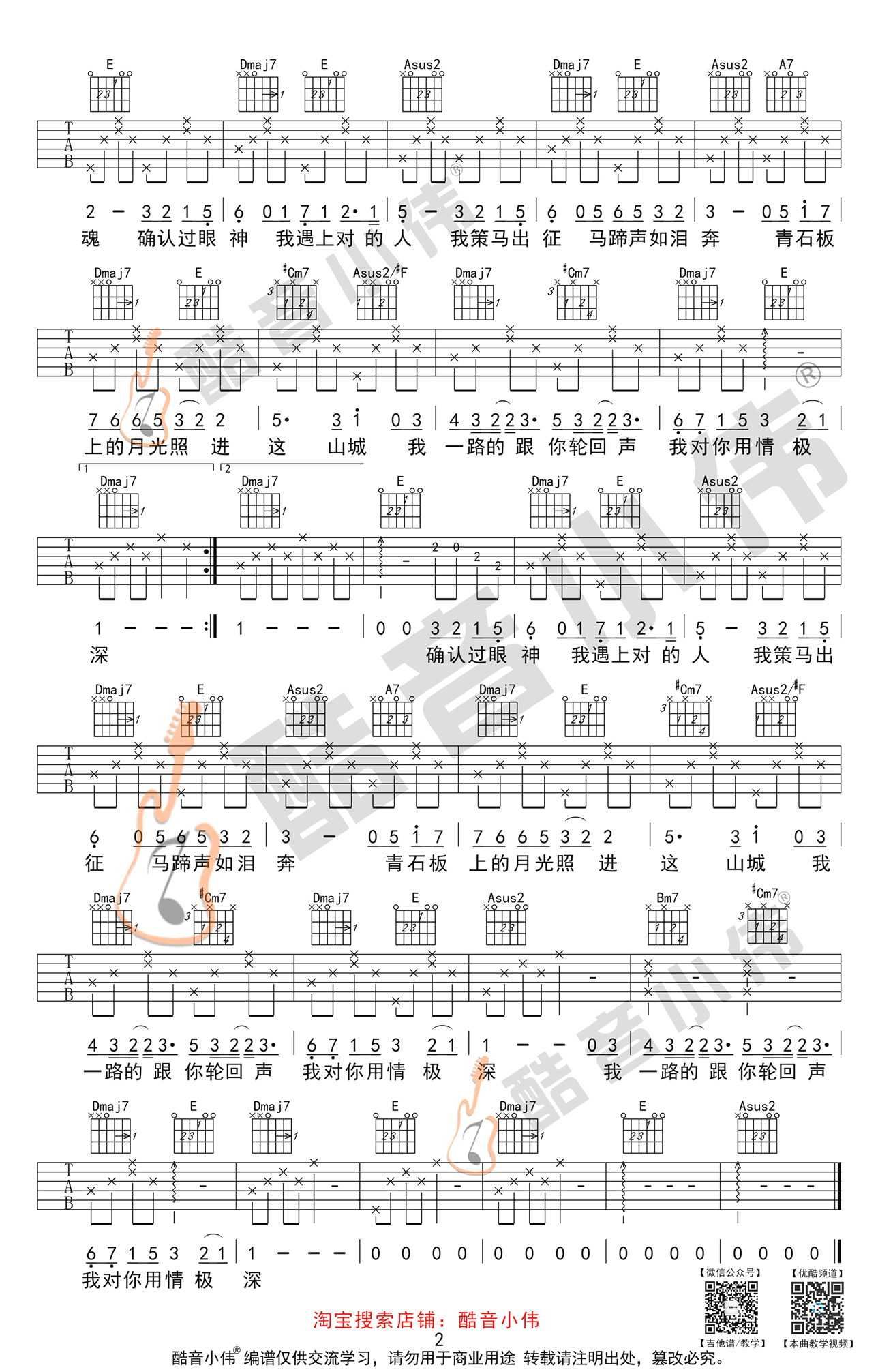 - 你是我的唯一吉他谱 林俊杰 E调弹唱谱+吉他教学视频