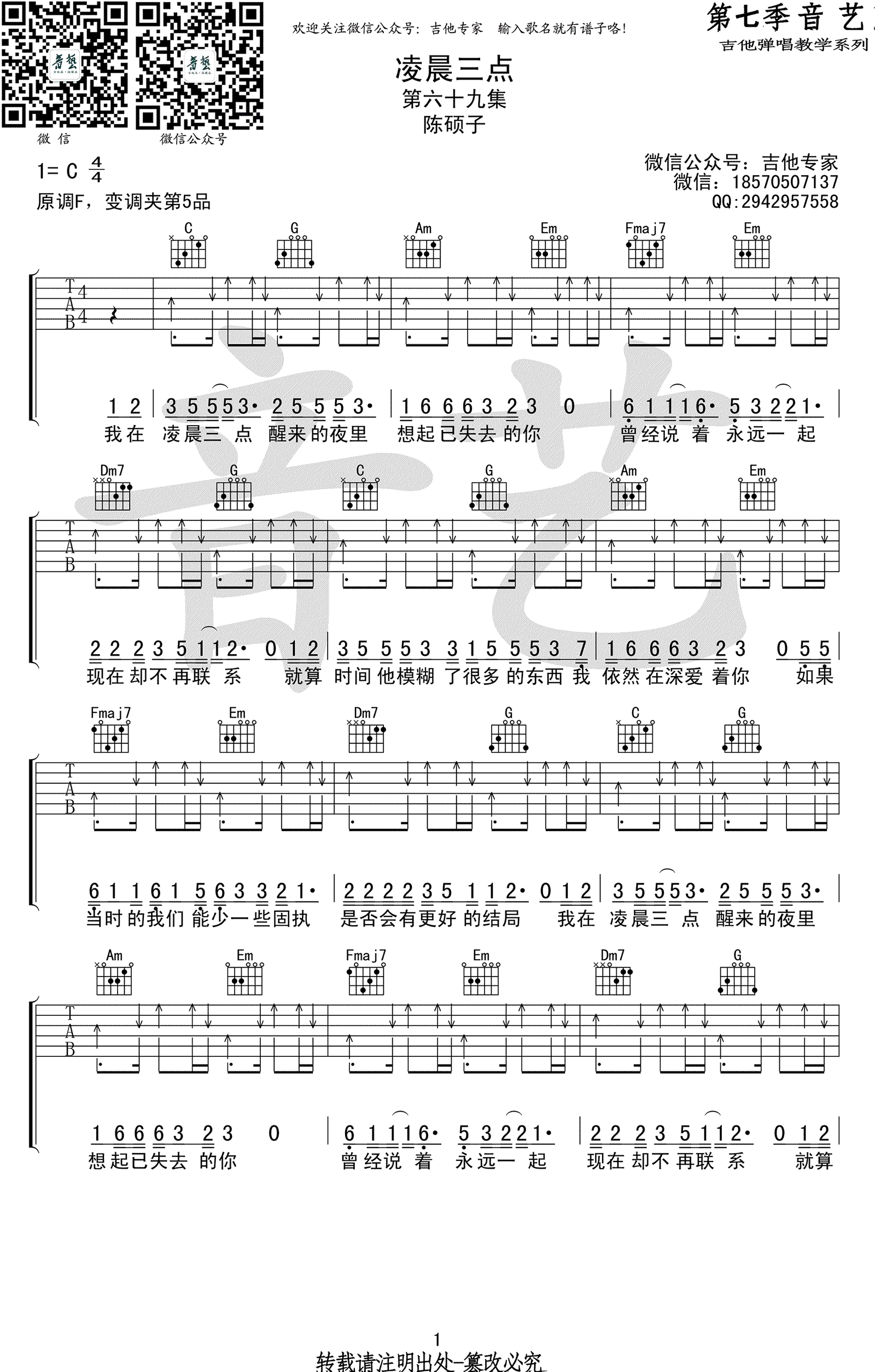 - 农夫渔夫吉他谱_小猛版本_吉他弹唱教学_图片谱