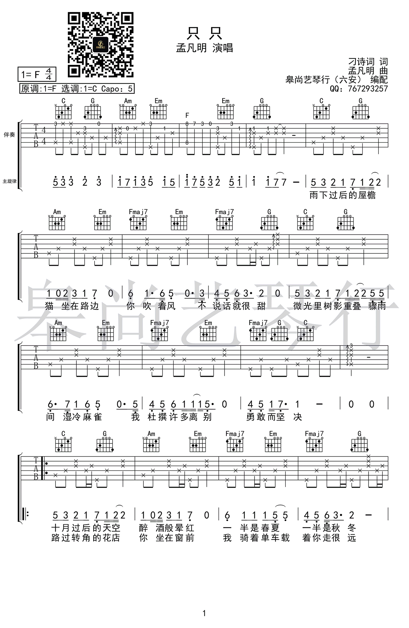 - 薛之谦《方圆几里》吉他谱_C调弹唱谱