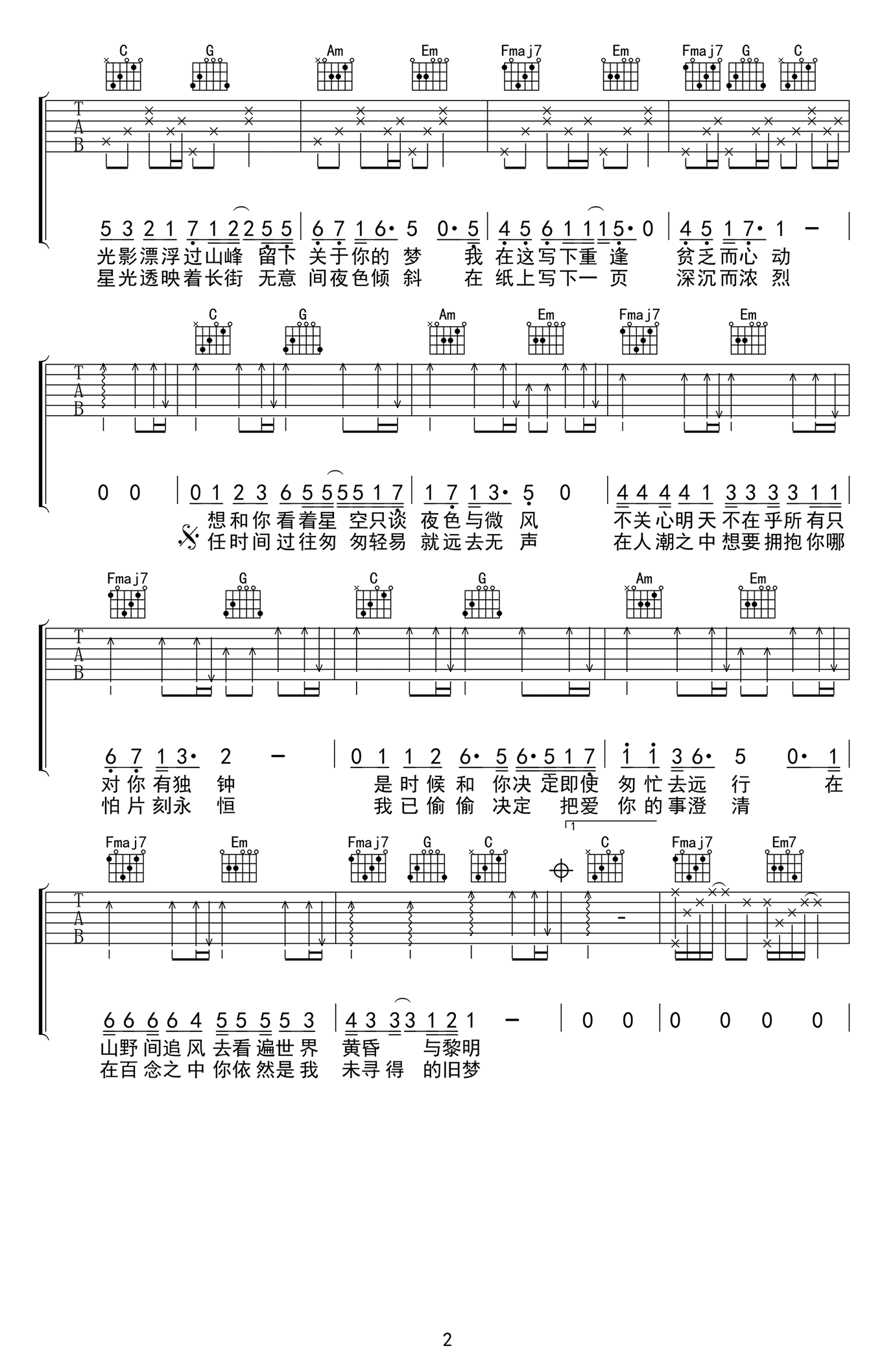 - 凌晨三点吉他谱 陈硕子 C调弹唱谱 副歌六线谱