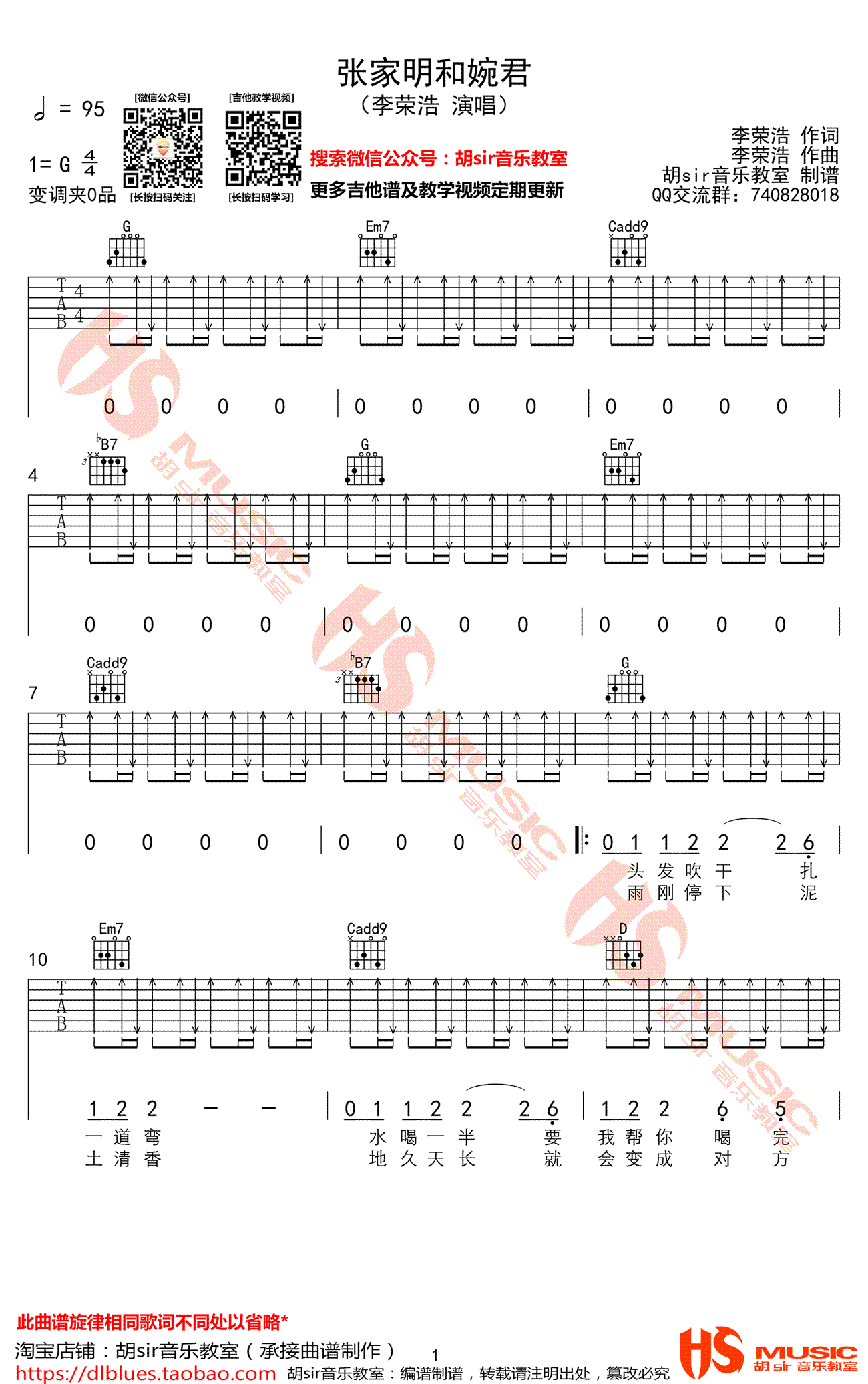 - 作曲家吉他谱 李荣浩 G调弹唱谱 图片谱