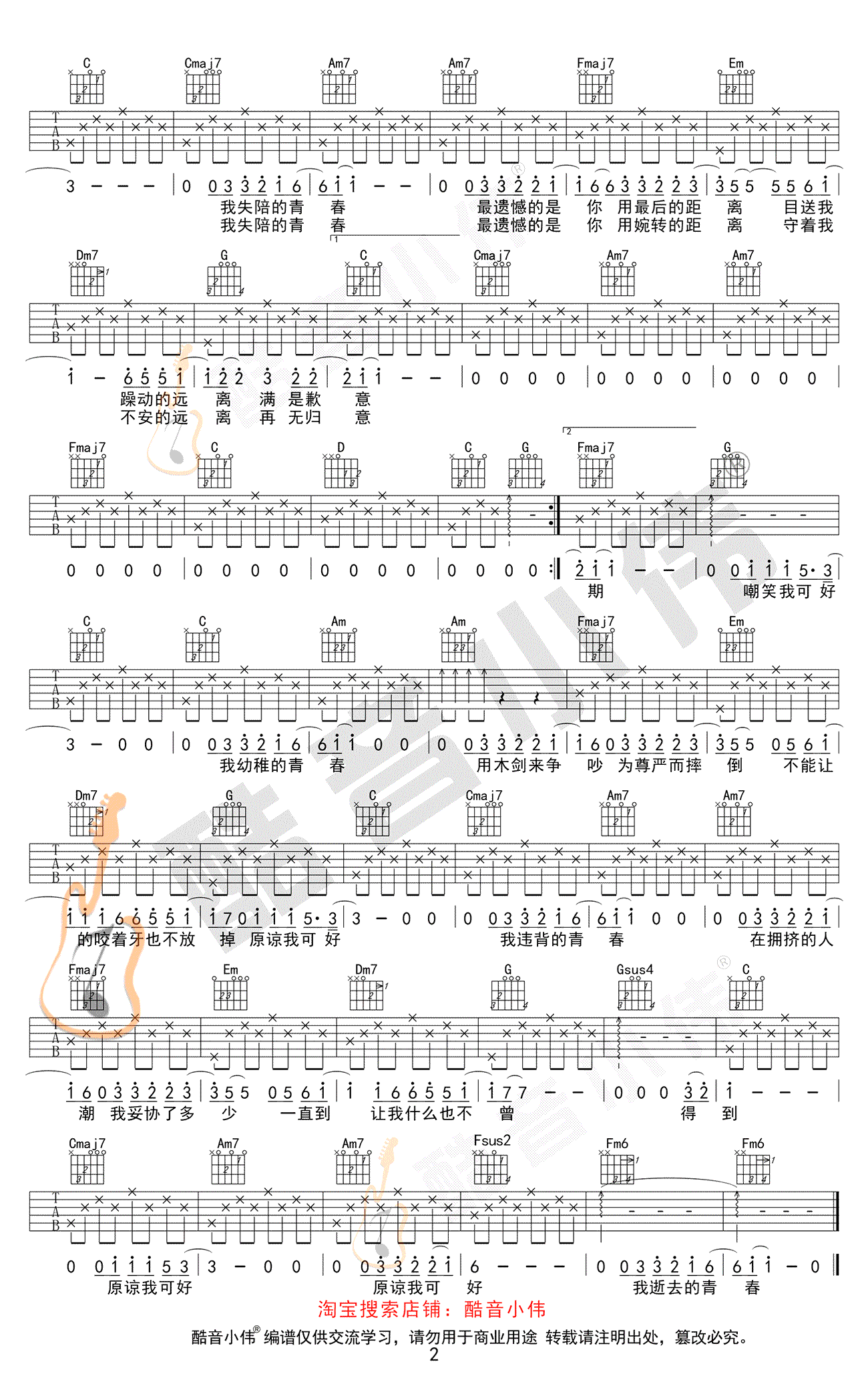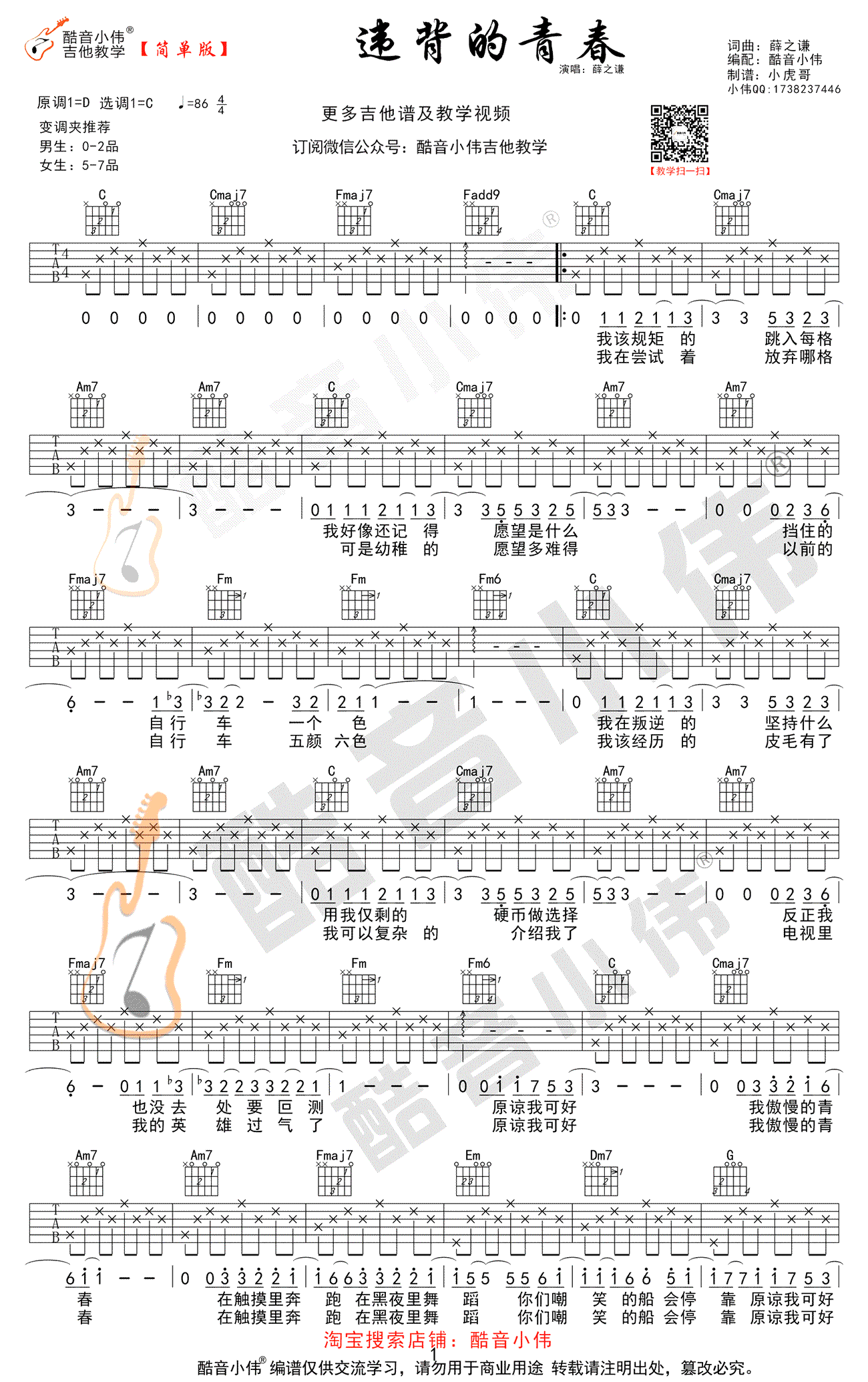 - 违背的青春吉他谱 薛之谦 C调弹唱谱 图片谱